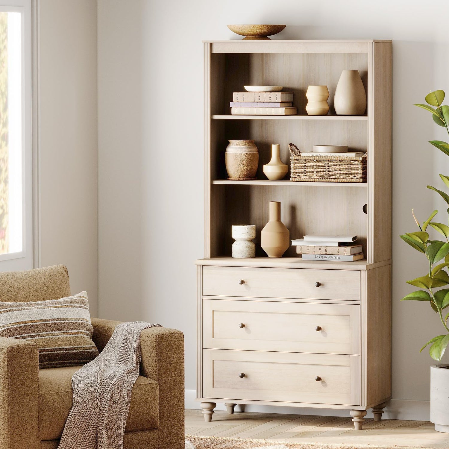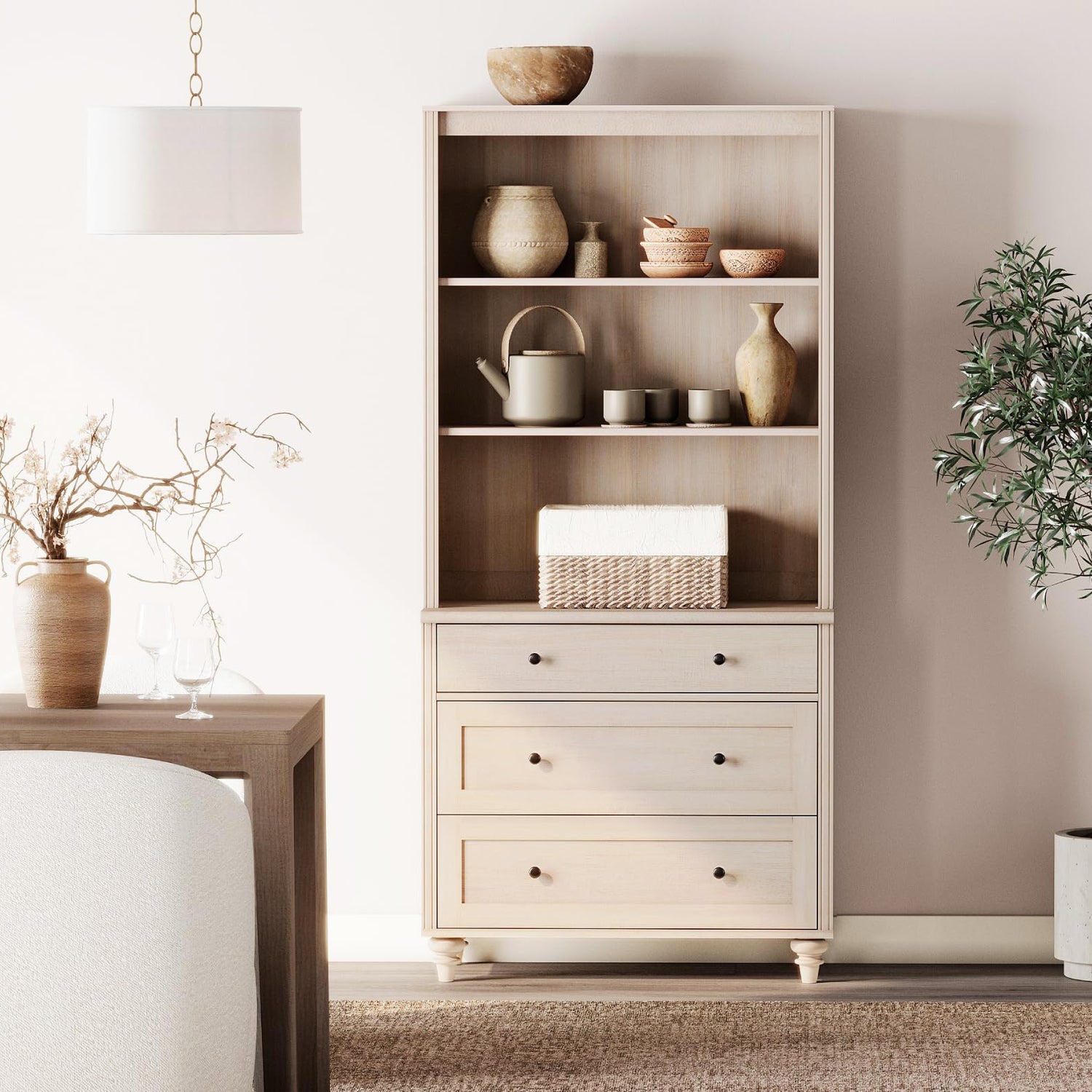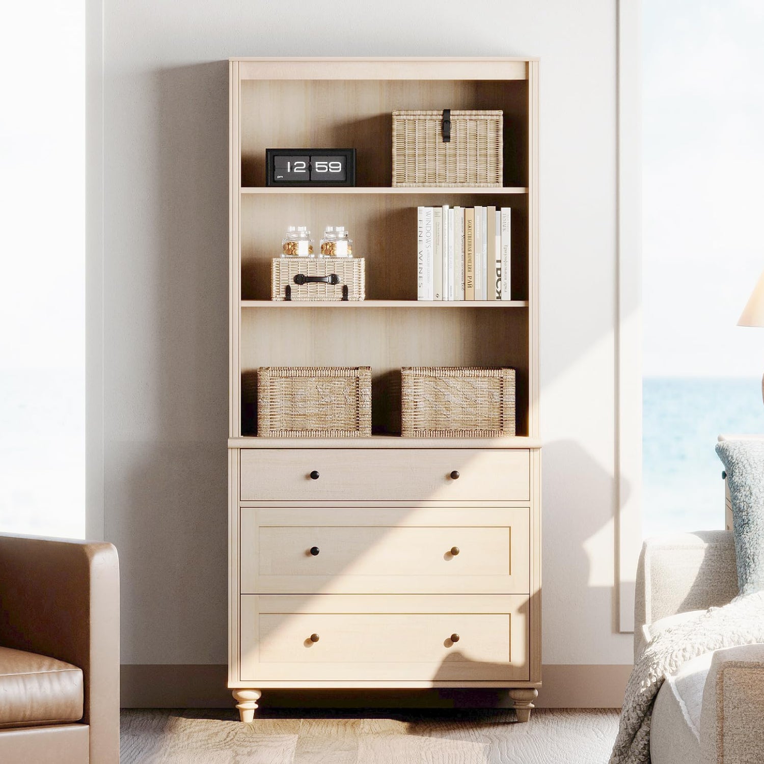 WAMPAT 3 Tier Bookshelf with 3 Drawers, 72" Tall Bookcase Large Farmhouse Display Book Case Shelf with 3-Tier Open Book Shelfs,Library Wood Bookshelves for Living Room,Kitchen, Light Oak