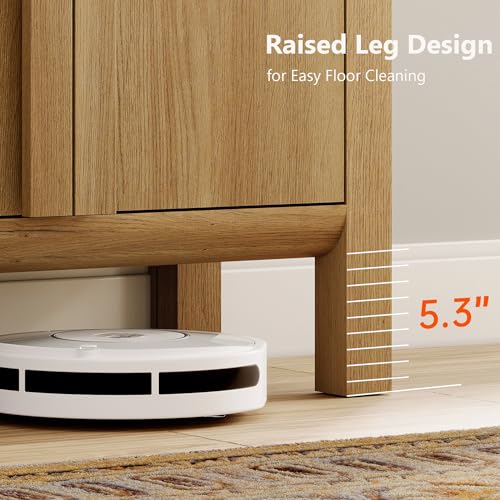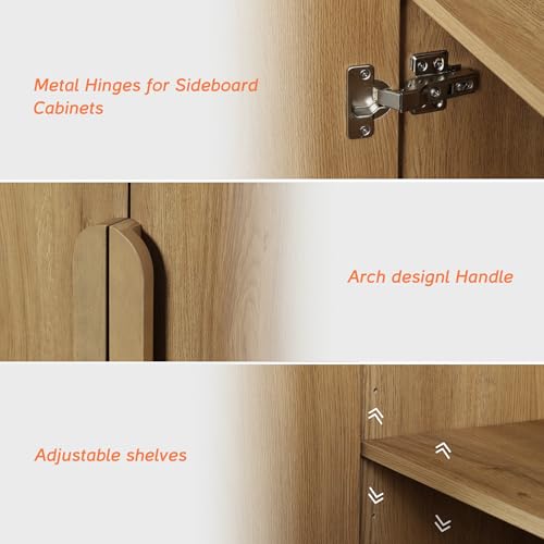 - French Vintage Style & Arched Design: Finished in light wood tones, this farmhouse sideboard brings a warm, With unique rounded handles and smooth curved edges, this modern sideboard adds a soft, refined aesthetic.Vintage vibe while maintaining clean modern lines. Ideal as a wooden cabinet for living rooms, kitchens, or entryways.