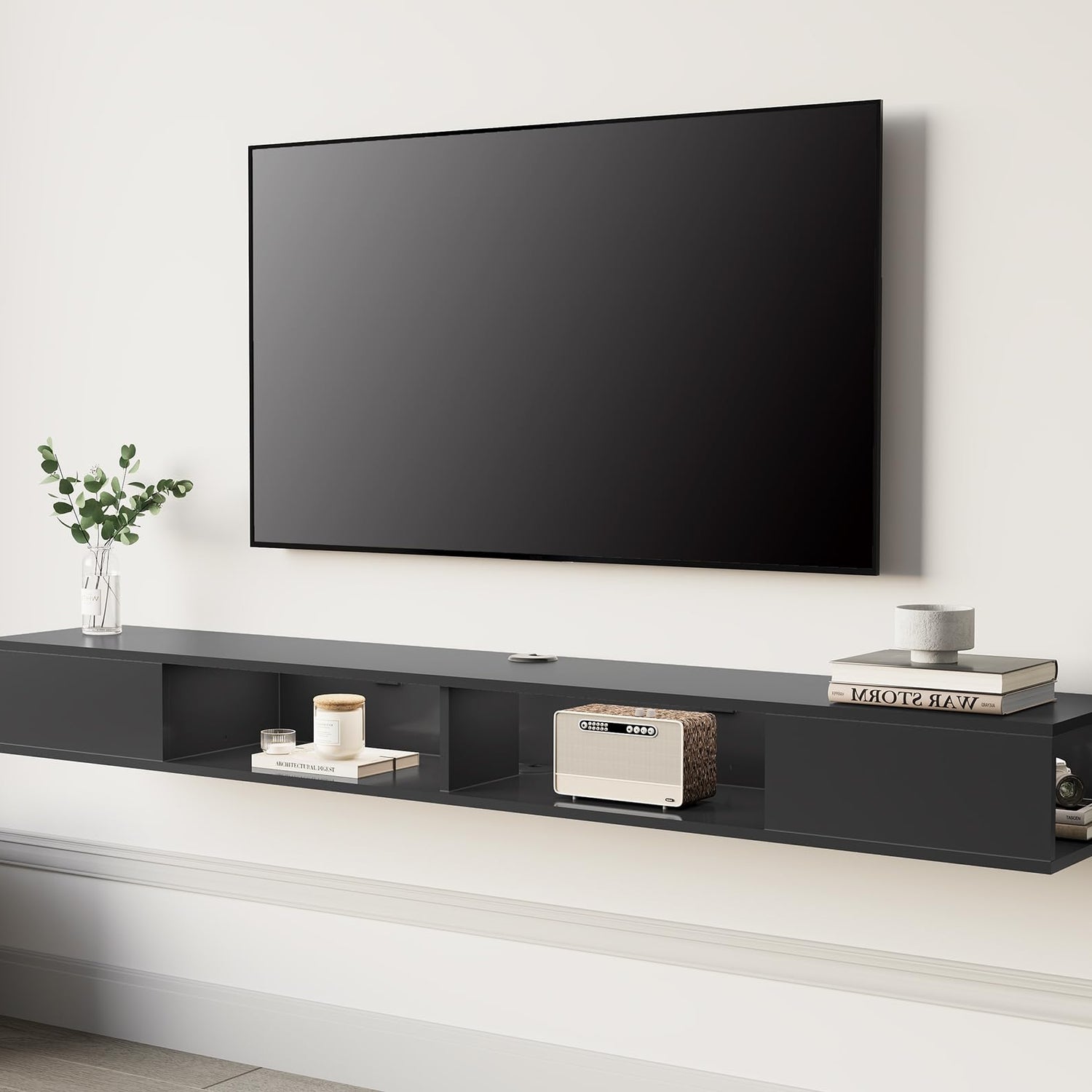 WAMPAT 70 inch Floating TV Shelf for TVs Up to 75 inch, Floating TV Stand with Storage Under TV for Living Room, Entertainment Center for Wall, Black
