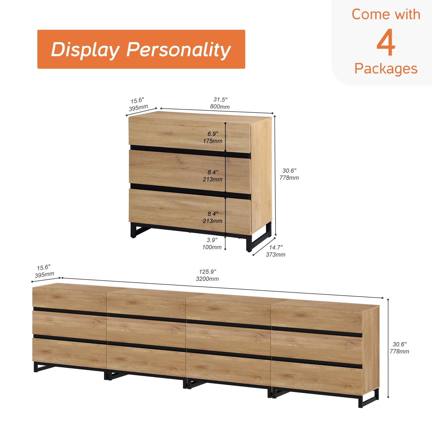 - 【Spacious Storage Space】This 12 drawers dresser has ample storage space that allows you to keep your living room neat and tidy. Boasting three spacious drawers, it provides plenty of room to store everything from your remote controls, DVDs, gaming consoles, to other miscellaneous items. Each drawer glides smoothly, ensuring easy access to your items.