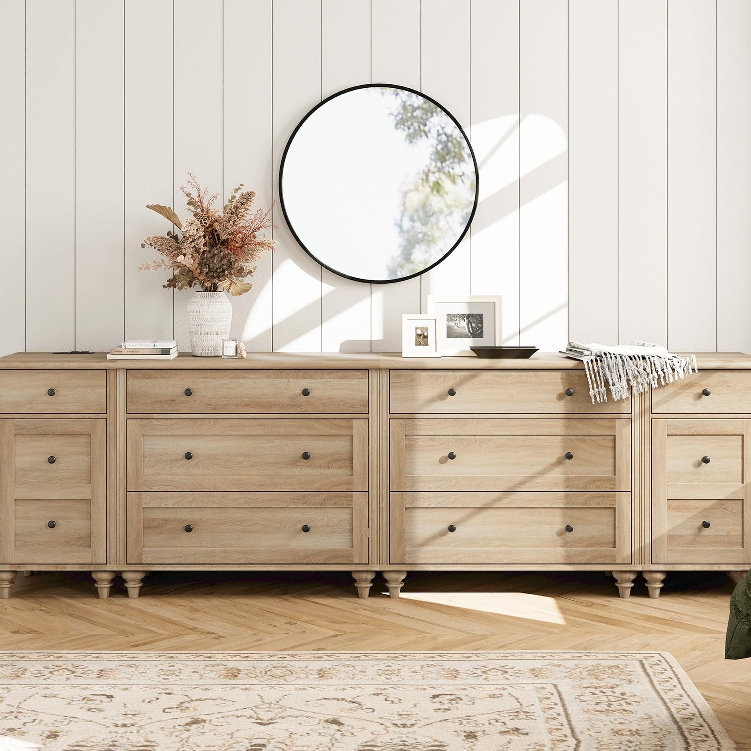 - 【Reliability&Humanized Design】The oak dresser with solid wood round gourd furniture legs add beauty and ensure the stability of the storage cabinet.And an additional anti-tipping kit is also included for added safety. Total Weight Capacity: 88 lbs.The distance between the bottom plate and the floor is large enough so that the robot vacuum cleaner can pass freely.