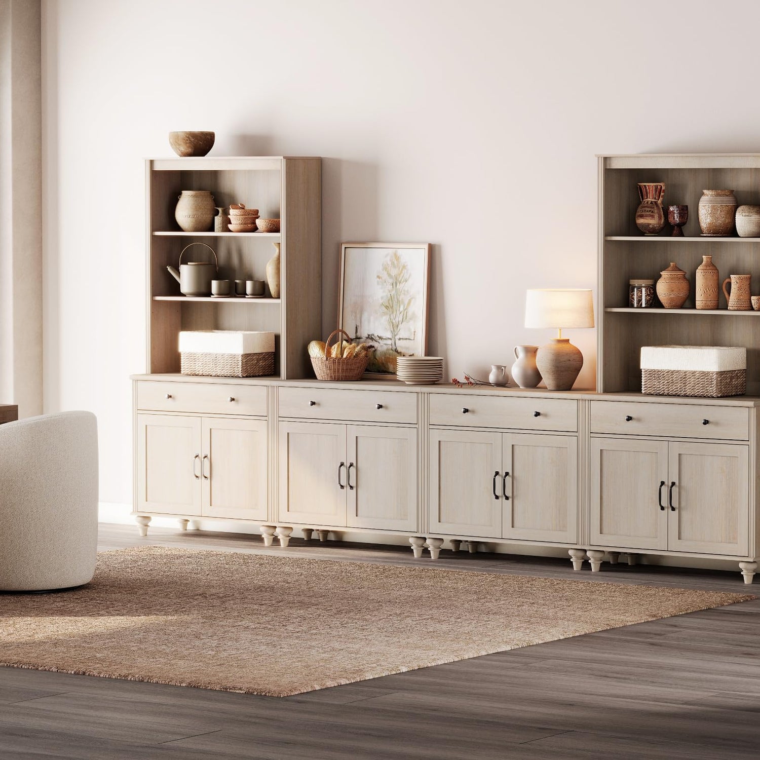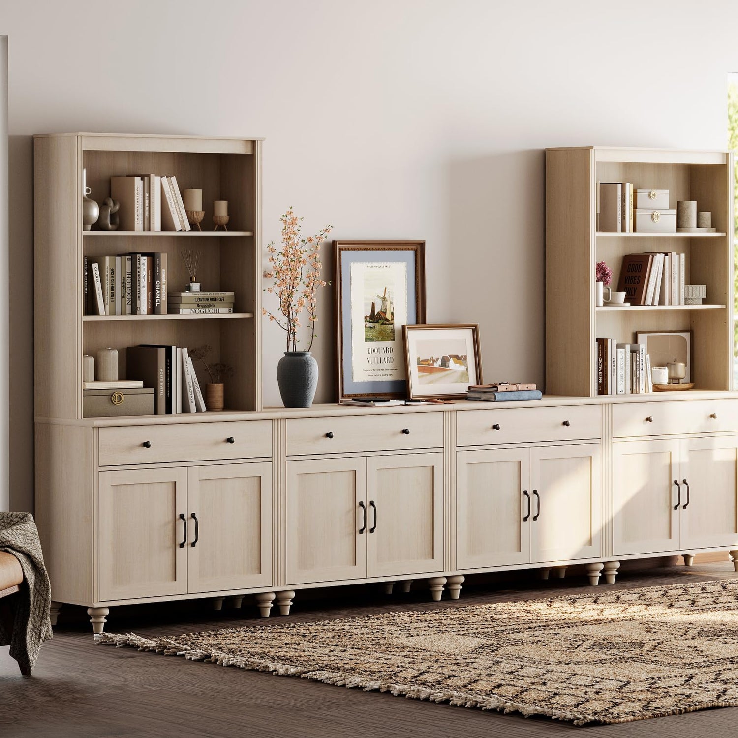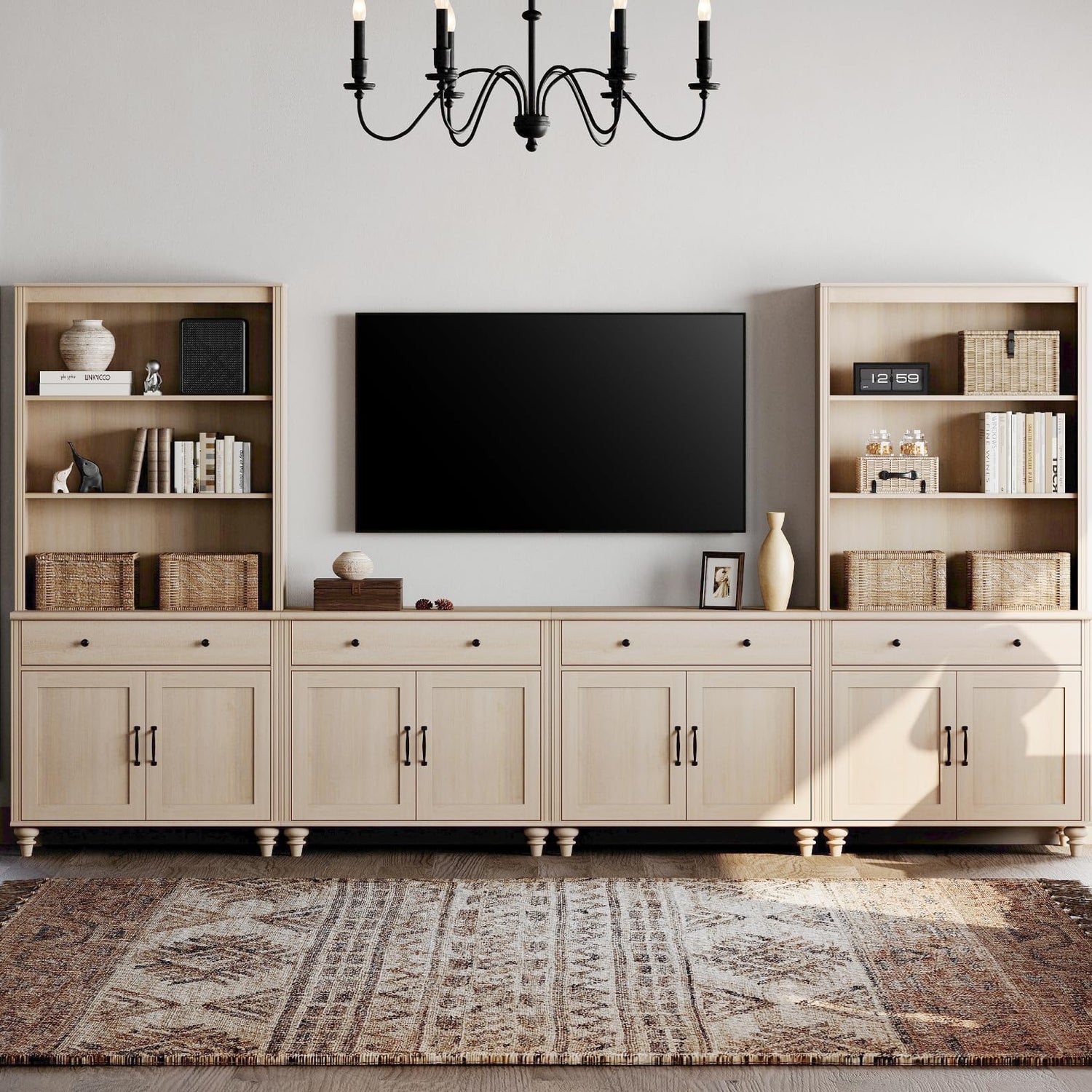 WAMPAT Entertainment Center with Bookshelves for TVs up to 75", Farmhouse Wall Unit TV Stand with 8 Doors & 4 Drawer, Media Console Table for Living Room, Bedroom & Home Theater, Beige