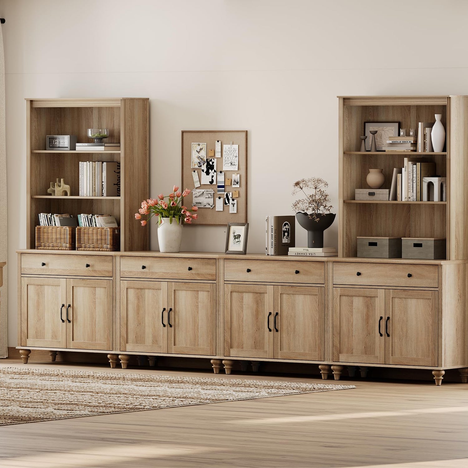 WAMPAT Entertainment Center with Bookshelves for TVs up to 75", Farmhouse Wall Unit TV Stand with 8 Doors & 4 Drawer, Media Console Table for Living Room, Bedroom & Home Theater, Oak