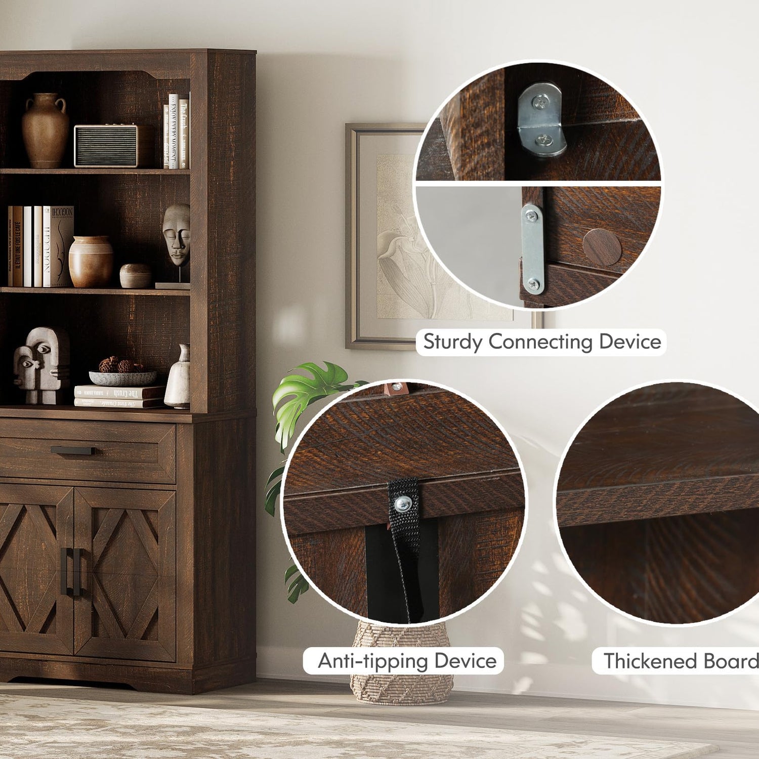 - Rustic-Chic & Worry-Free Finish: Elevate your space with farmhouse charm meets modern minimalism. Signature sliding barn doors and diamond-pattern cabinet doors add rustic texture, while the realistic wood grain stain & scratch-resistant top wipes clean instantly—no more panic over wine spills or kid’s crayons! Just a damp cloth restores perfection
