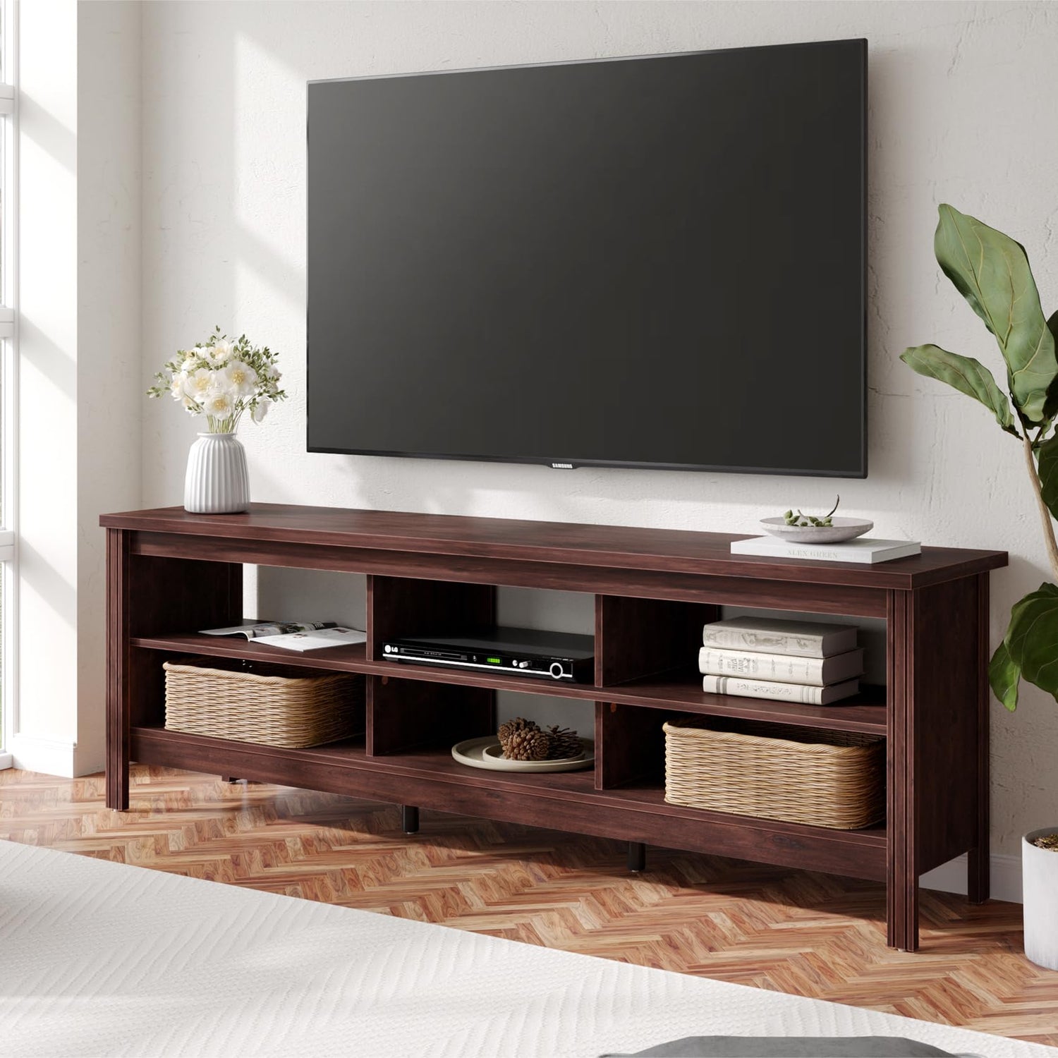 WAMPAT Farmhouse TV Stand for 75 inch TV, Wood Entertainment Center for 80 inch TV Console Table with 6 Storage Cubby for Living Room & Bedroom, 70 inch, Brown