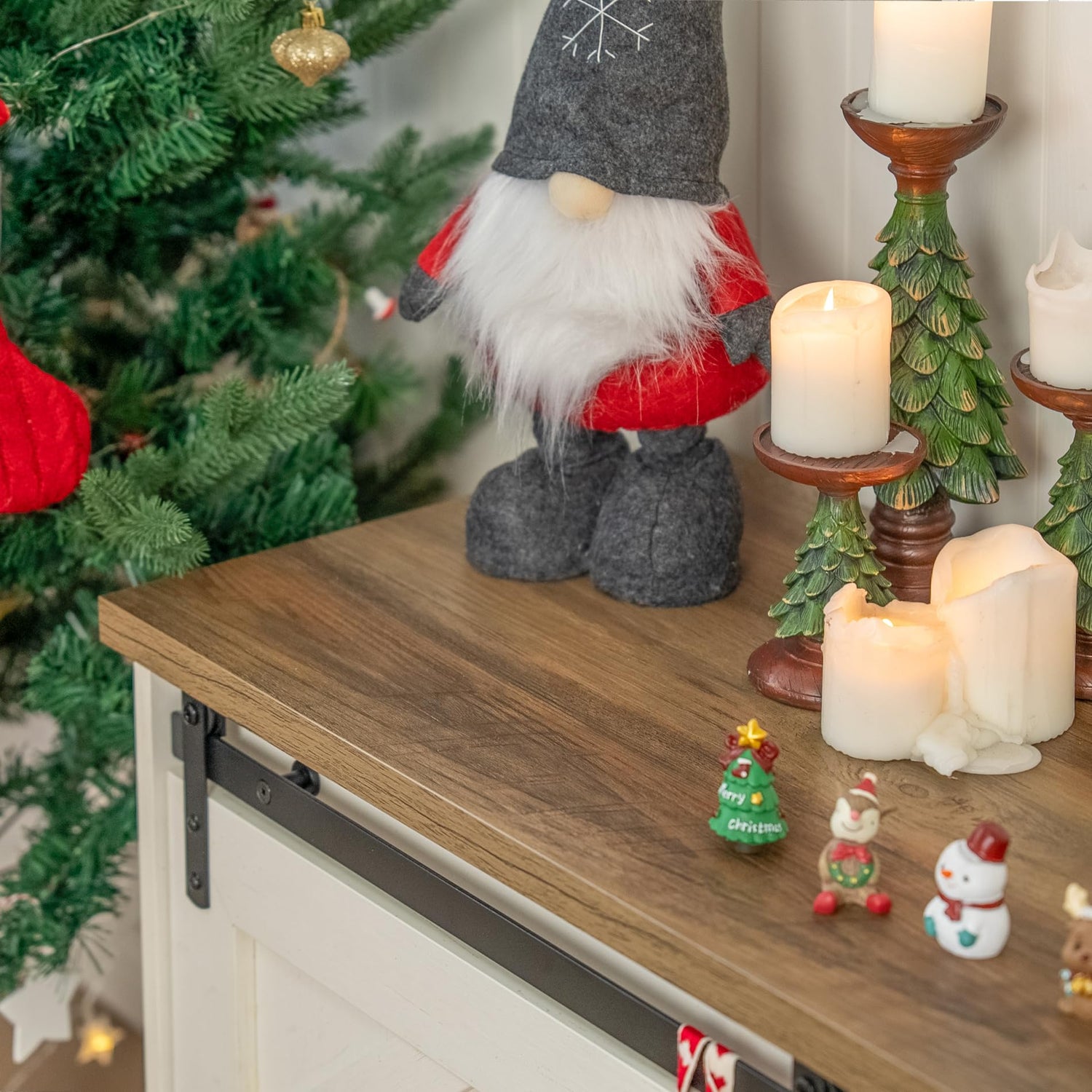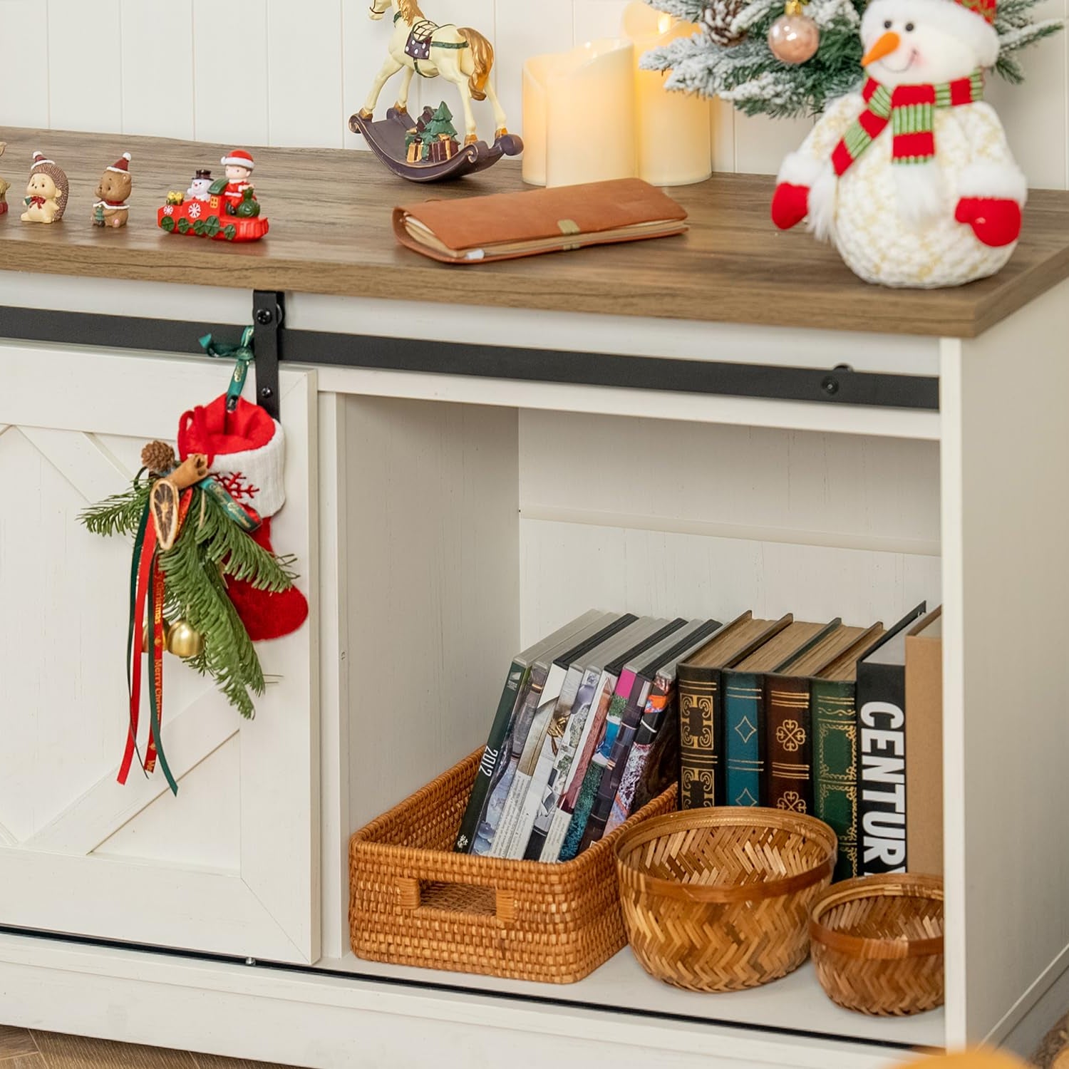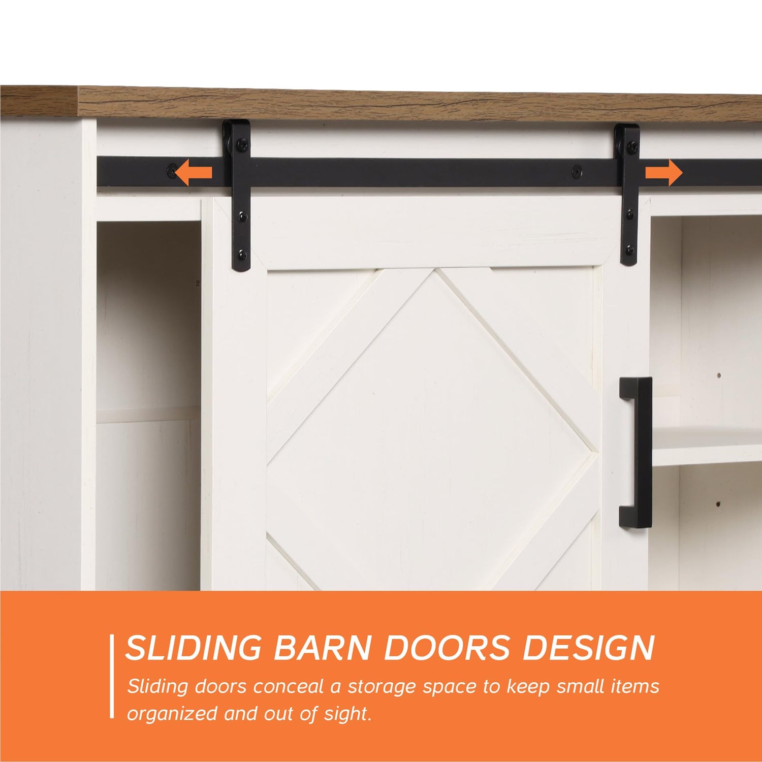 - 【Farmhouse Barn-Door Design】TV stands are crafted from the finest wood grain surface and feature barn doors that slide easily, allowing easy access to all necessities. Suitable for all decor styles and increase aesthetic for your living room.
