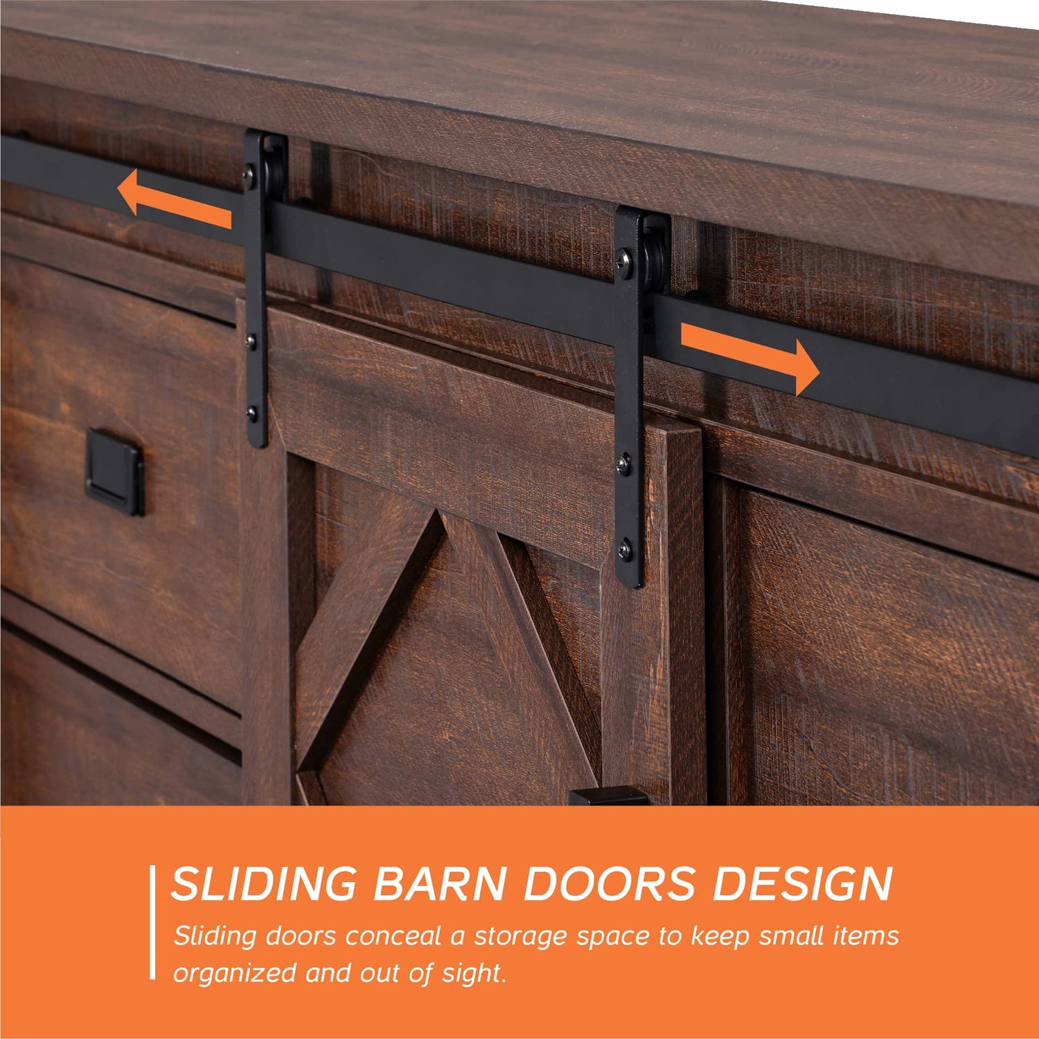 - 【 Multifunctional】The cabinet featured with barn doors, an adjustable shelf in the center and 10 drawers, this media console provides abundant storage or display space for CDs, DVDs, game boxes, decorative items and more. The sliding barn doors on the TV cabinet make it easy to access items while keeping out dust. You also have the option of sliding the doors to either side of the TV stand to reveal items on the shelves inside.