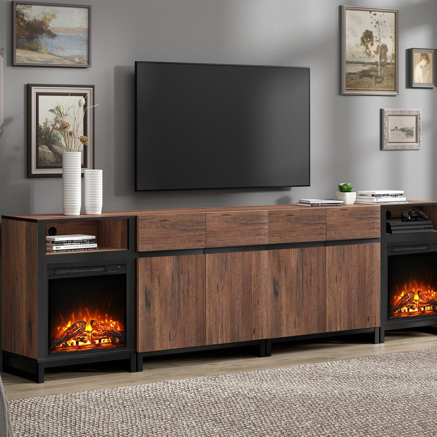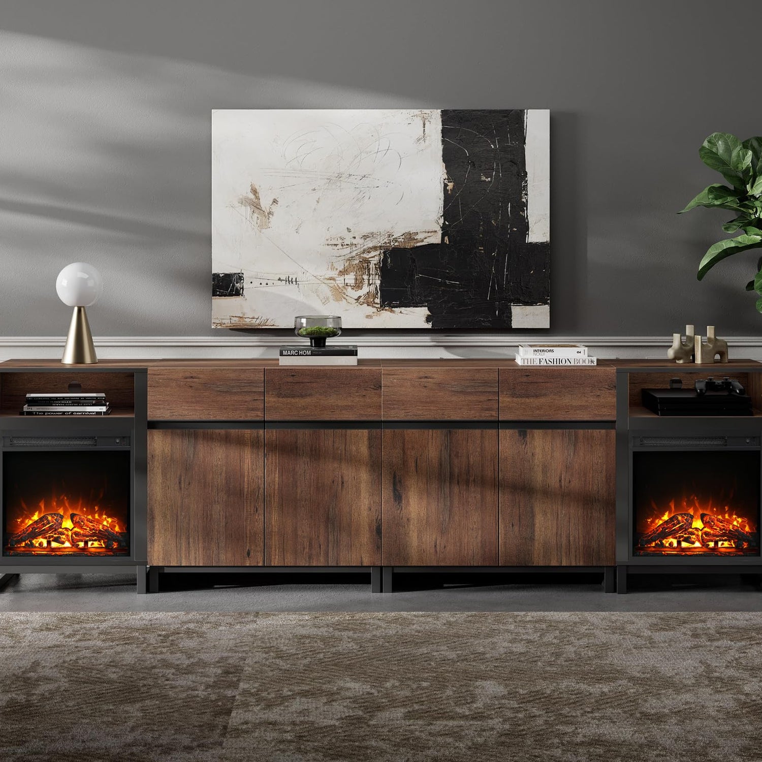 - 【Modern Design】This Electric fireplace TV stand features concealed door handles for a neater appearance. Adorned with a walnut grain design, it seamlessly complements various decor styles, from modern simplicity to American country and tranquil pastoral themes. It's an excellent addition to elevate your home's aesthetic.