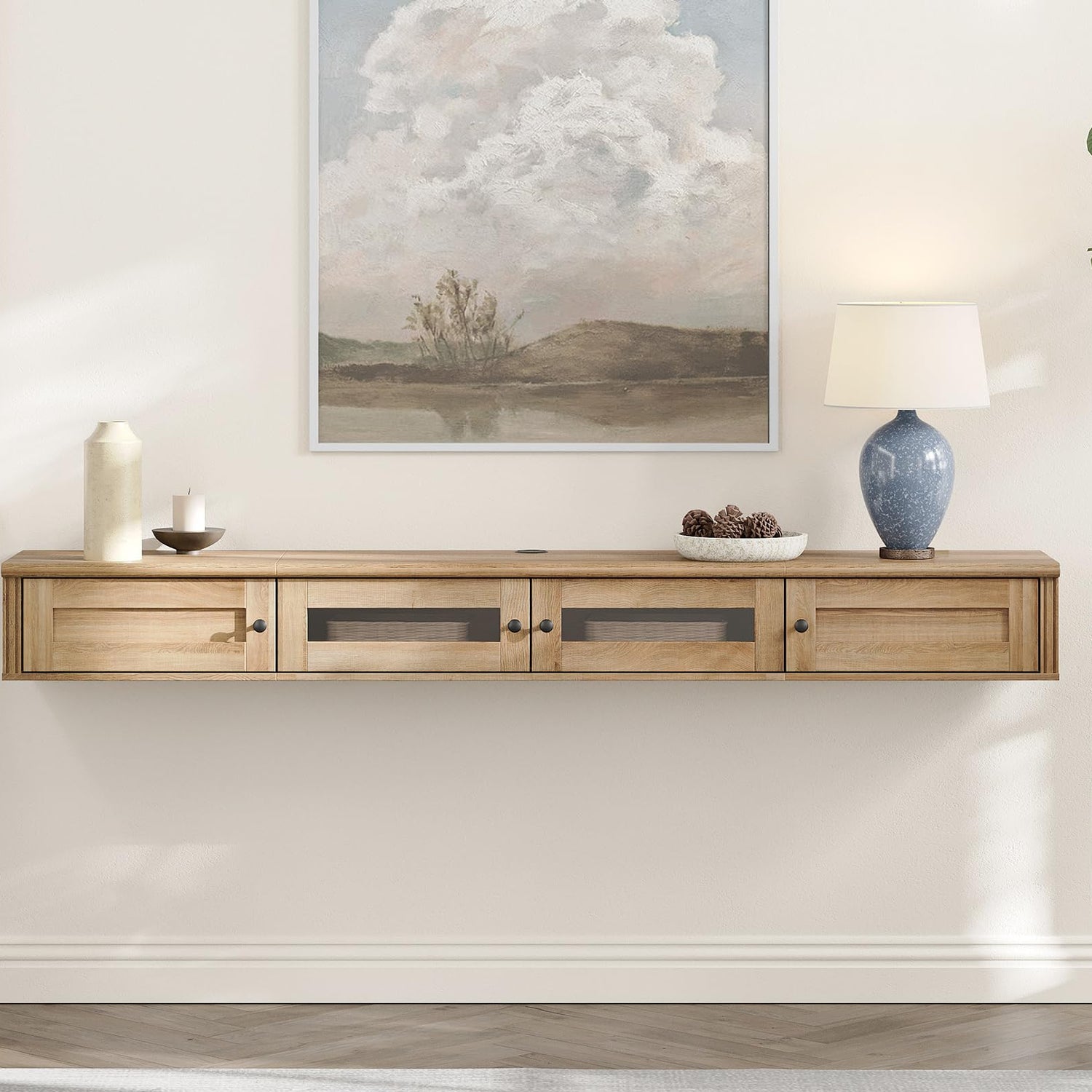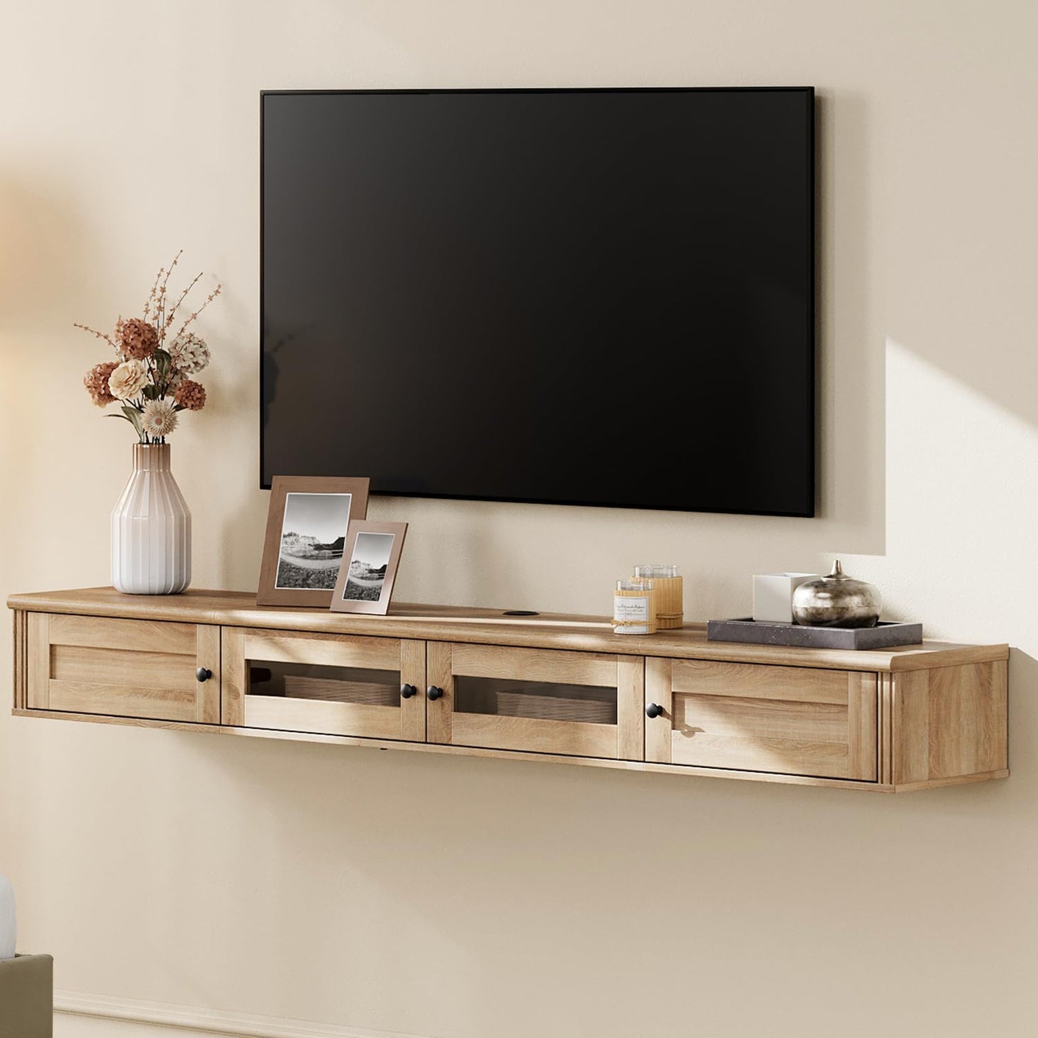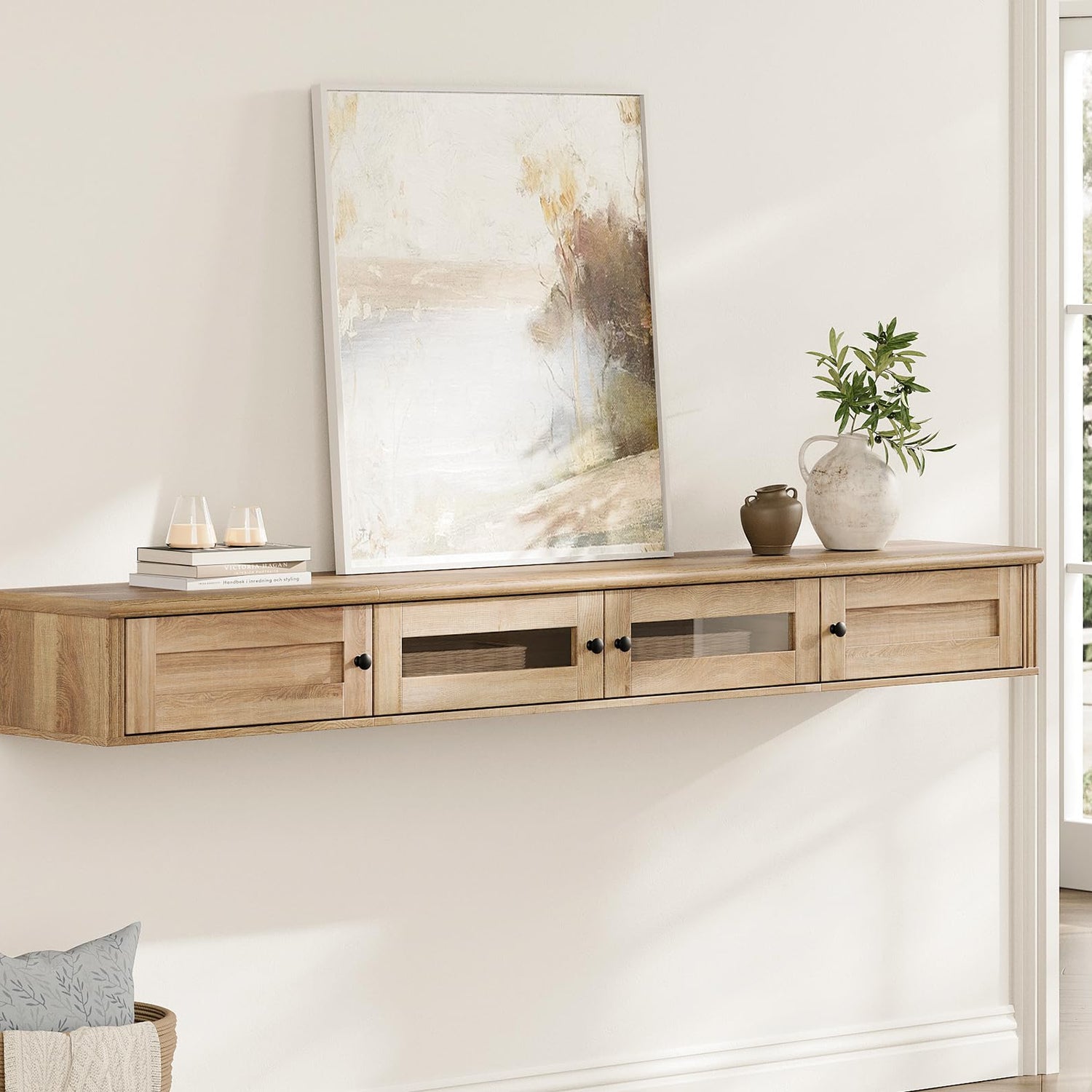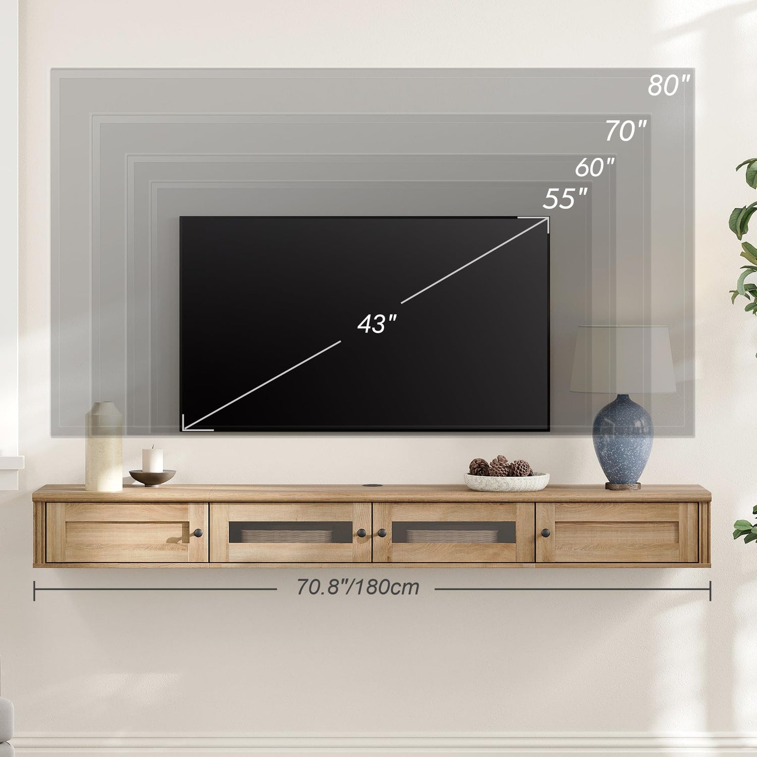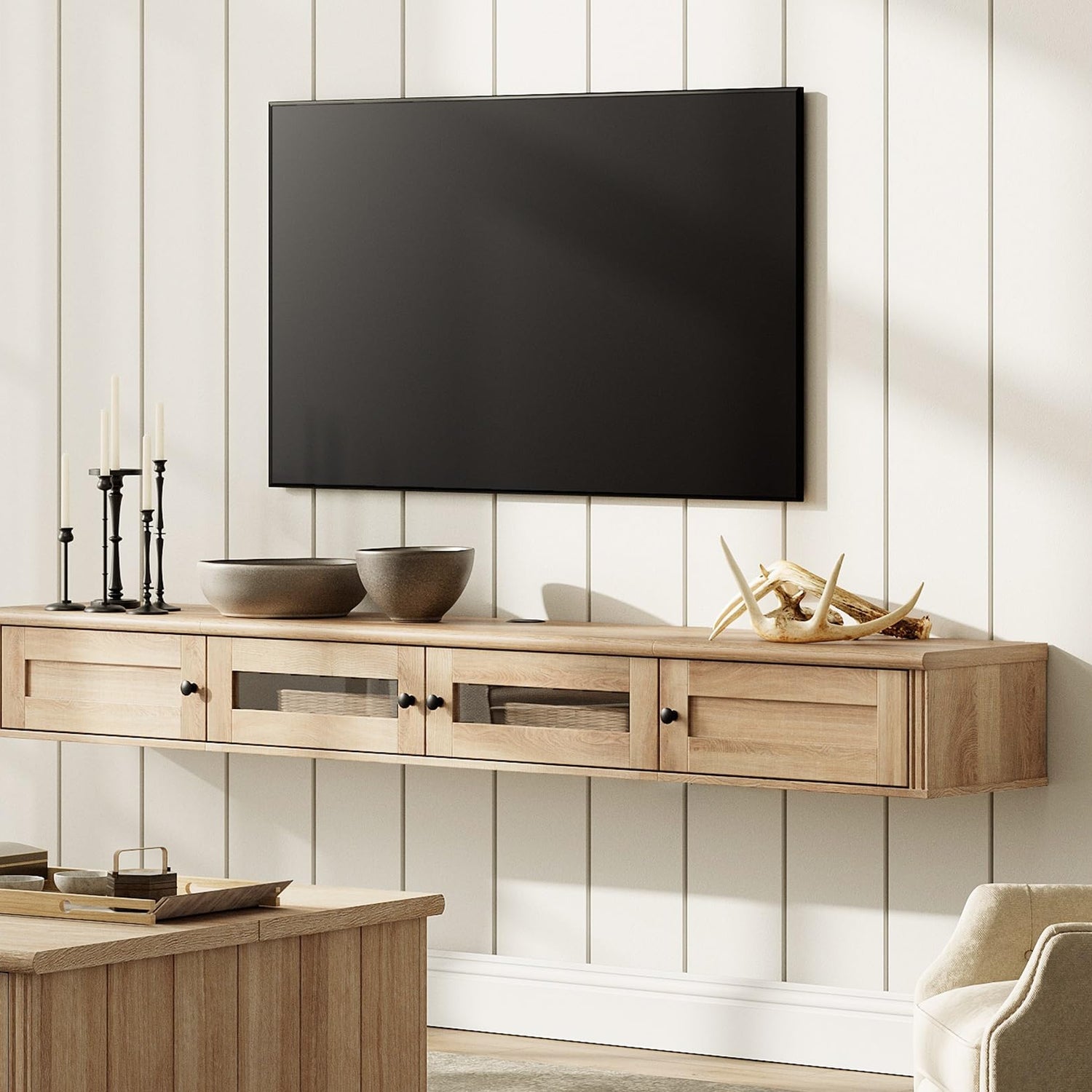 WAMPAT Floating TV Stand for TVs up to 80 Inch, Wooden Floating TV Shelf with Storage Cabinet, Modern Floating TV Shelf Entertainment Center for Living Room, Oak