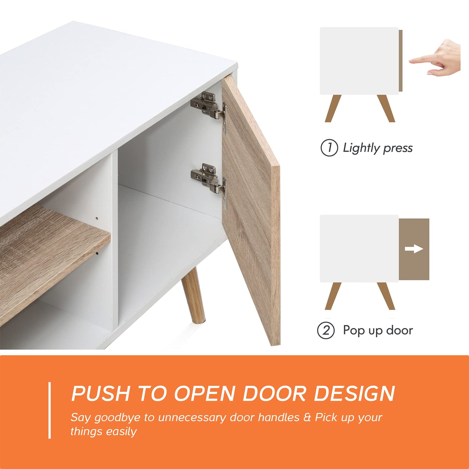 - 【Ample Storage & Practical】Our space-saving console helps make your home feel lived in and neat. Featuring the height adjustment of open shelf, you can adjust its height by removing the board directly according to your needs. Table top for your family portrait, decorations, plant, ect. Push-to-open cabinet door is easy to switch, but offers additional secluded space to protect your privacy.