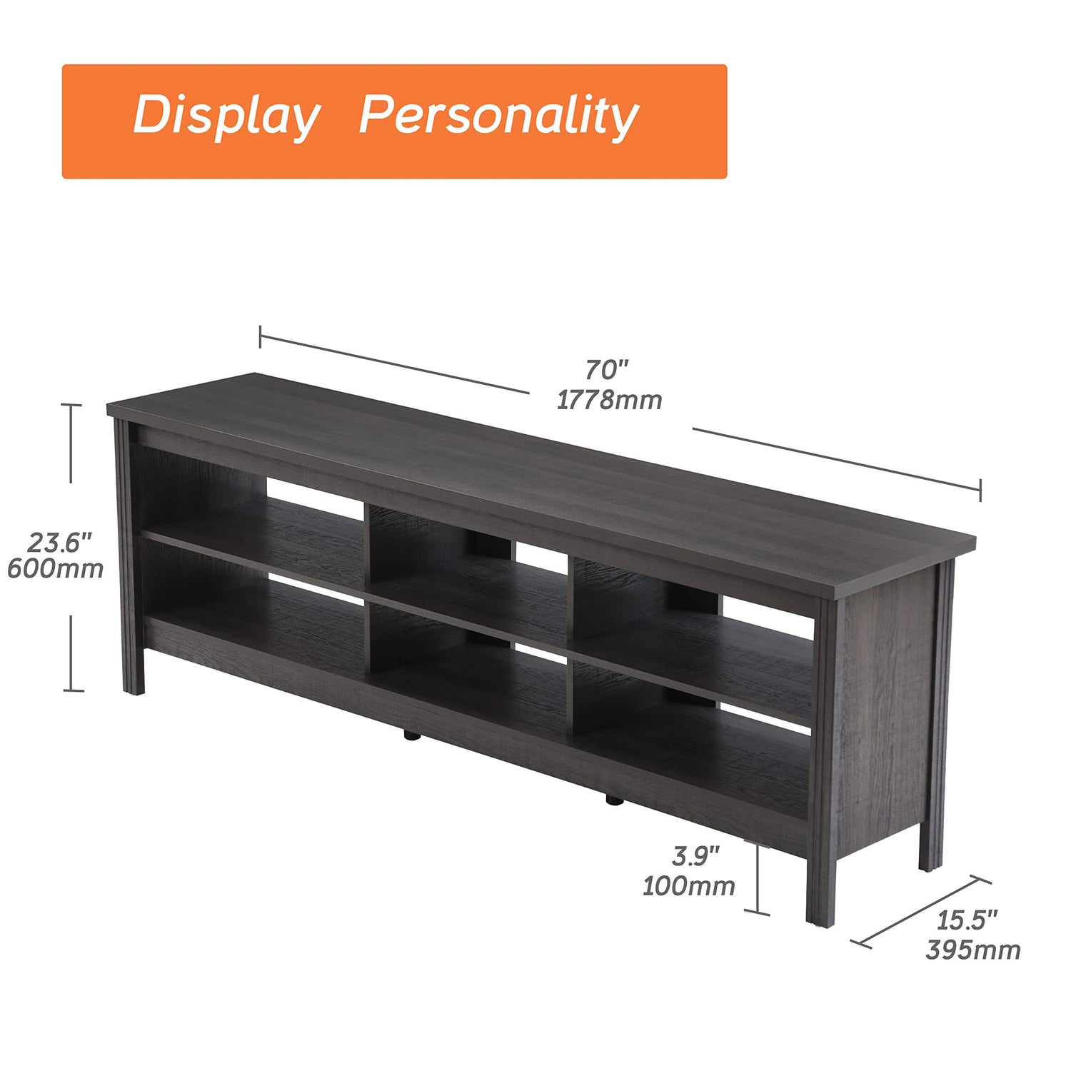 - 【Large Tabletop & Storage Space】Characterized by a wide tabletop, the television stands can accommodate TVs up to 75", of course, it is also suitable for 50", 55", 60", 65" flat screen. And the 70 inch TV stand features 6 cubby to offer sufficient storage space to meet all storage requirements. Plus, the open storage shelf design makes it easy to display and take your things.