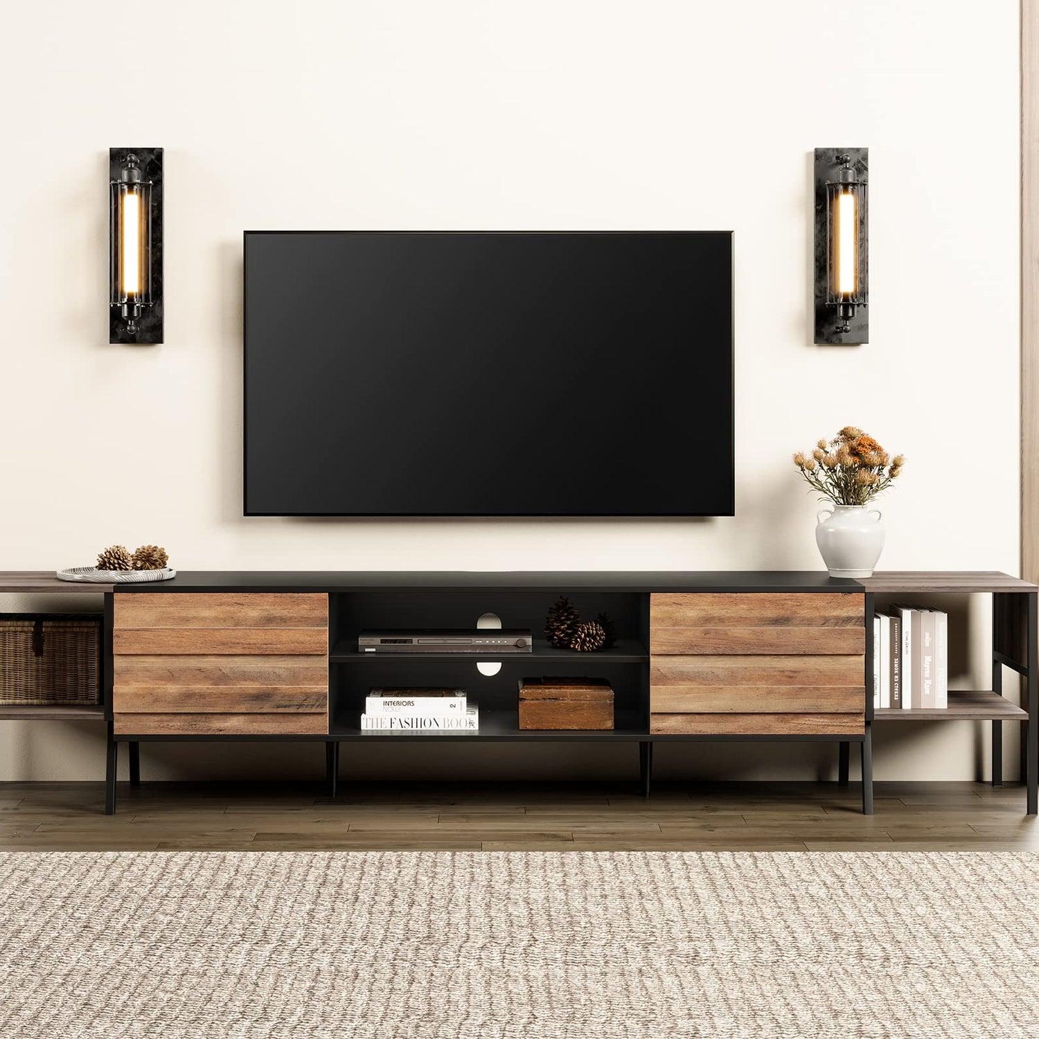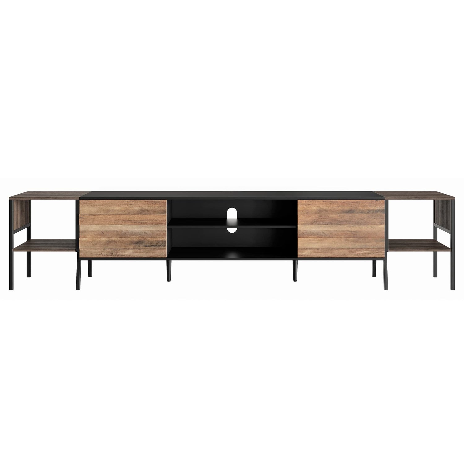 - 【TV Stand with Detachable End Table】The 70 inch tv stand comes with two 15.7 inch end tables from the same series. So you could splice them to get a 85 inch TV stand or 100 inch TV stand according to your needs. The side tables can be simply fixed to the TV cabinet by screws, but pls note that the side tables can not be used alone.