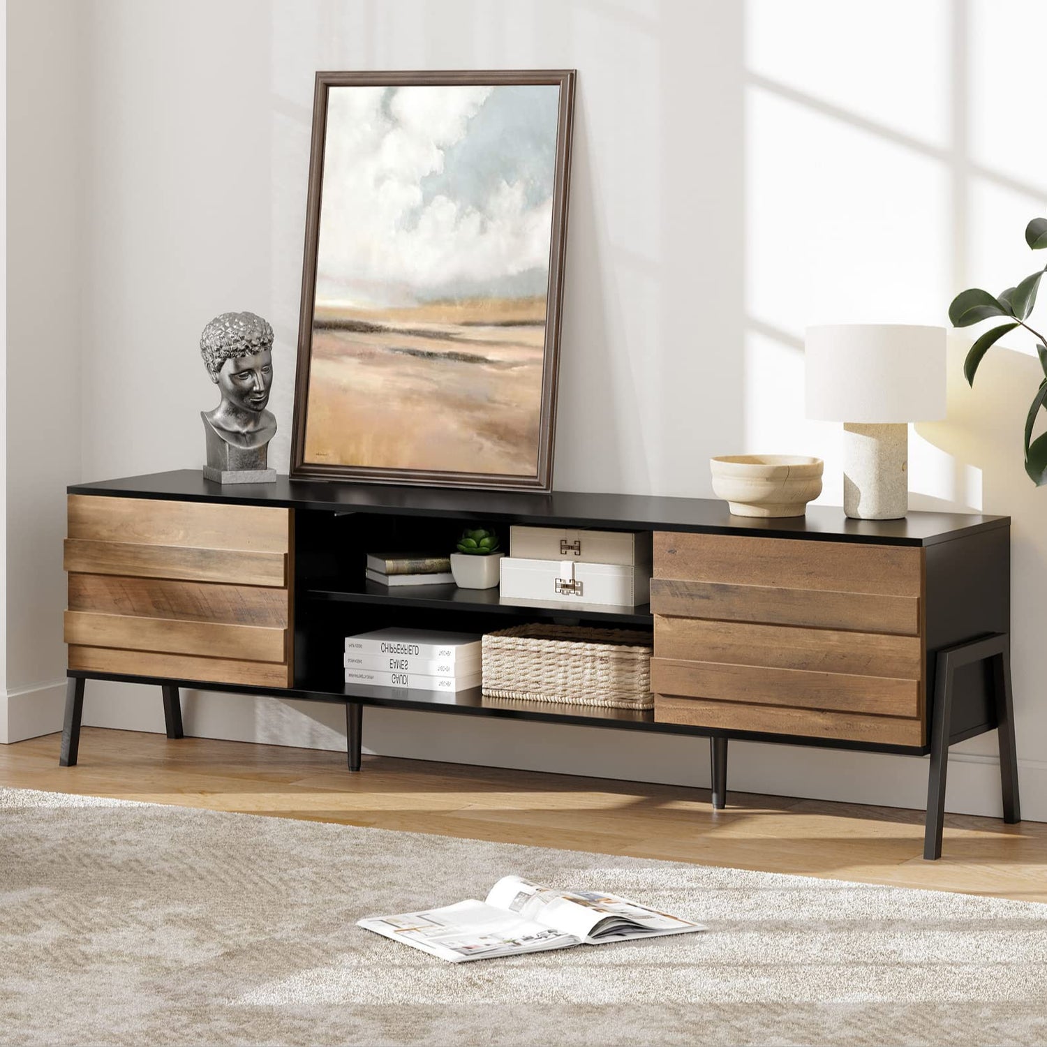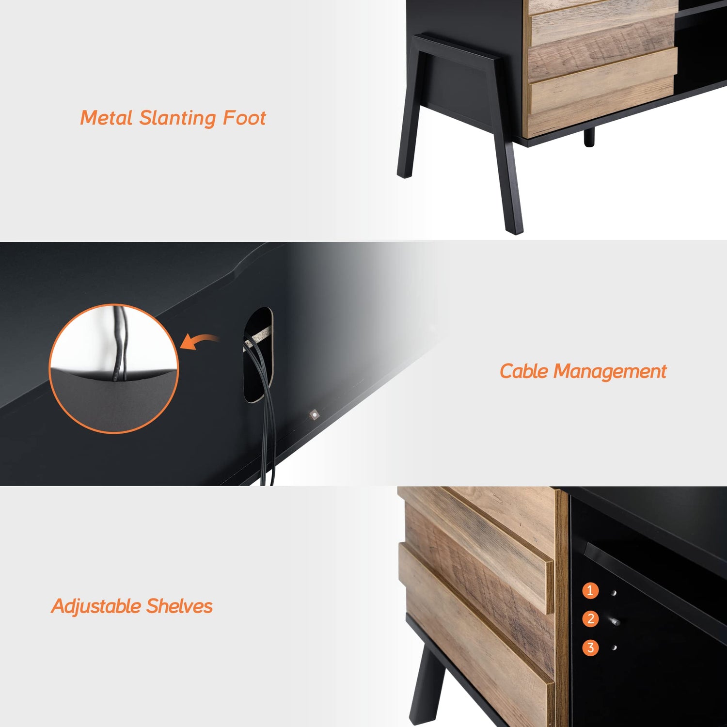 - 【Mid-Century Modern Style】The retro TV stand can accommodate 75-105 inch TV. Its natural wood grain surface and clean lines present an advanced texture and natural beauty. The tv console table also can be used as a storage cabinet, entryway table, etc..