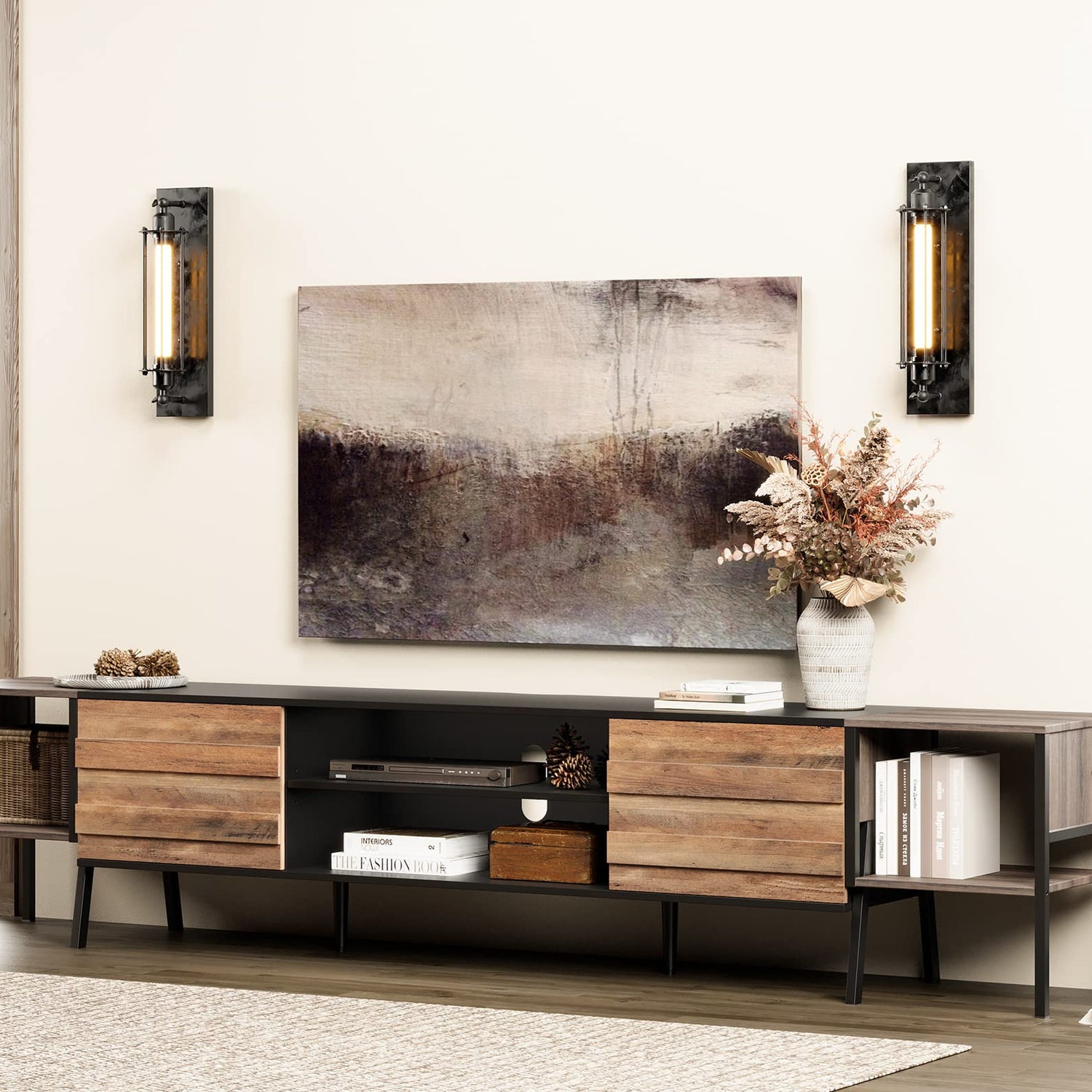 - 【Large Storage Space】The wood entertainment center features four open shelves, which is great for DVD, cable box or blue-ray player while perfect for cooling. Plus, two storage cabinets offer extra concealed storage space for your desire for neatness. And the cabinet door could be opened effortlessly with light pressing.
