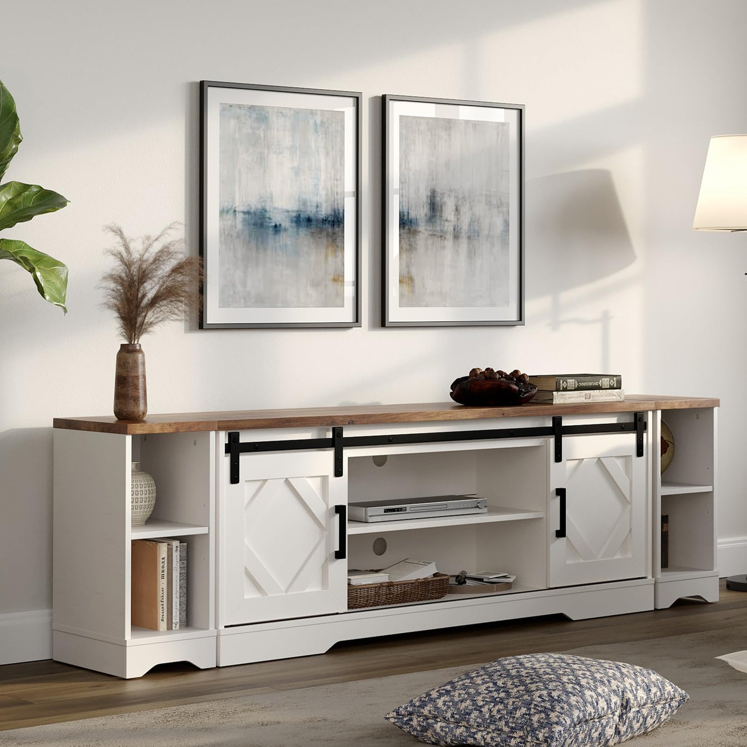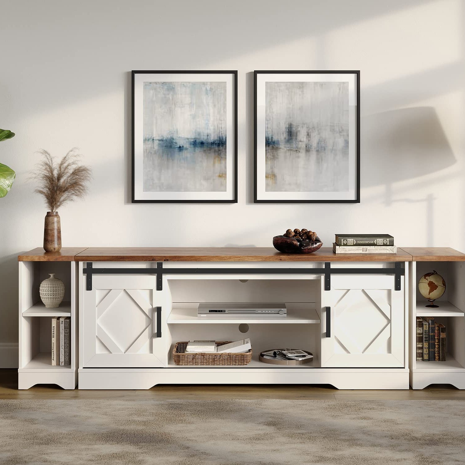 WAMPAT Modern Farmhouse 3 in 1 TV Stand for up to 85" TVs Wood Entertainment Center with Open Storage for Living Room Antique White