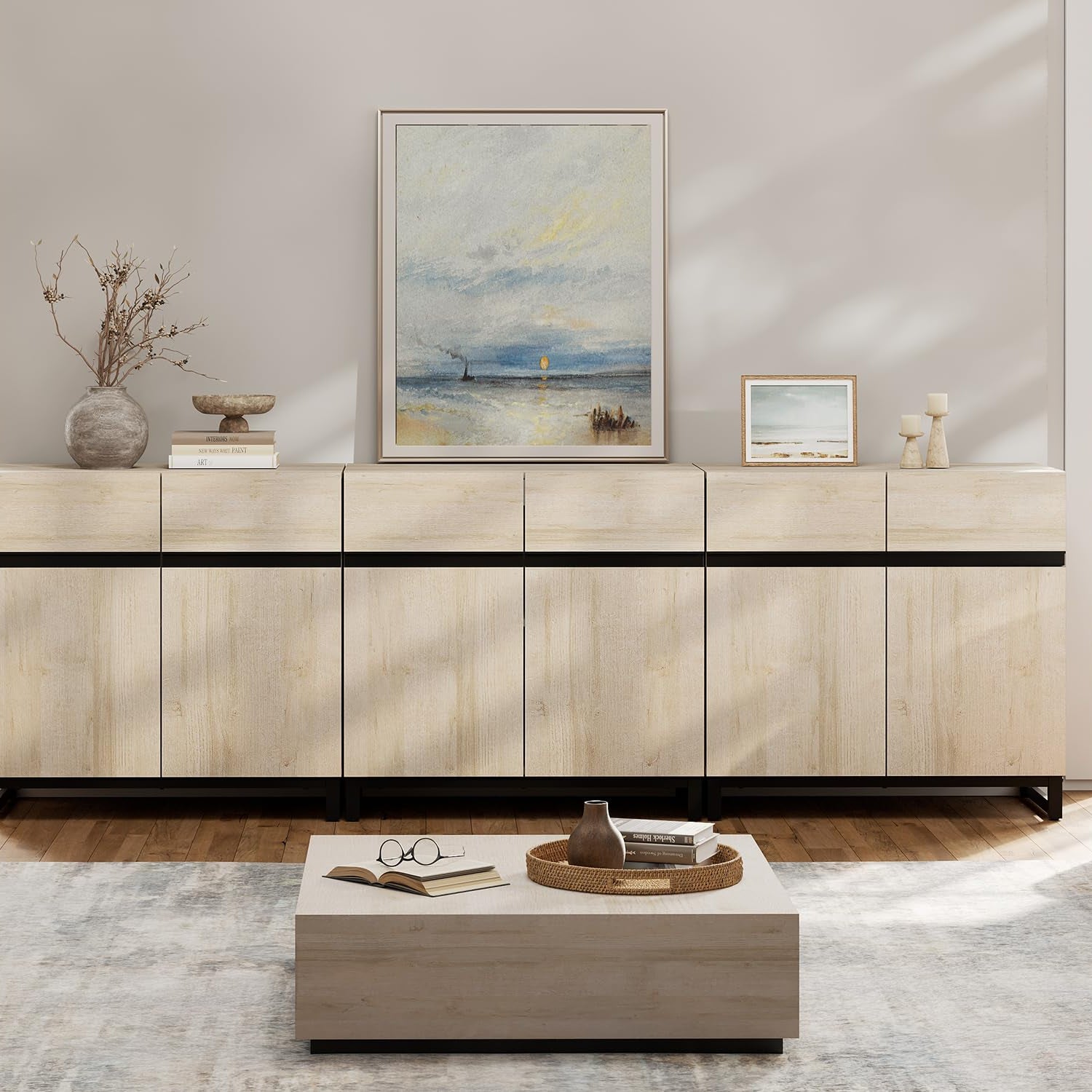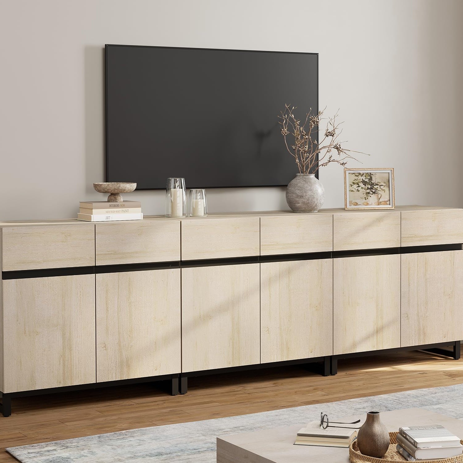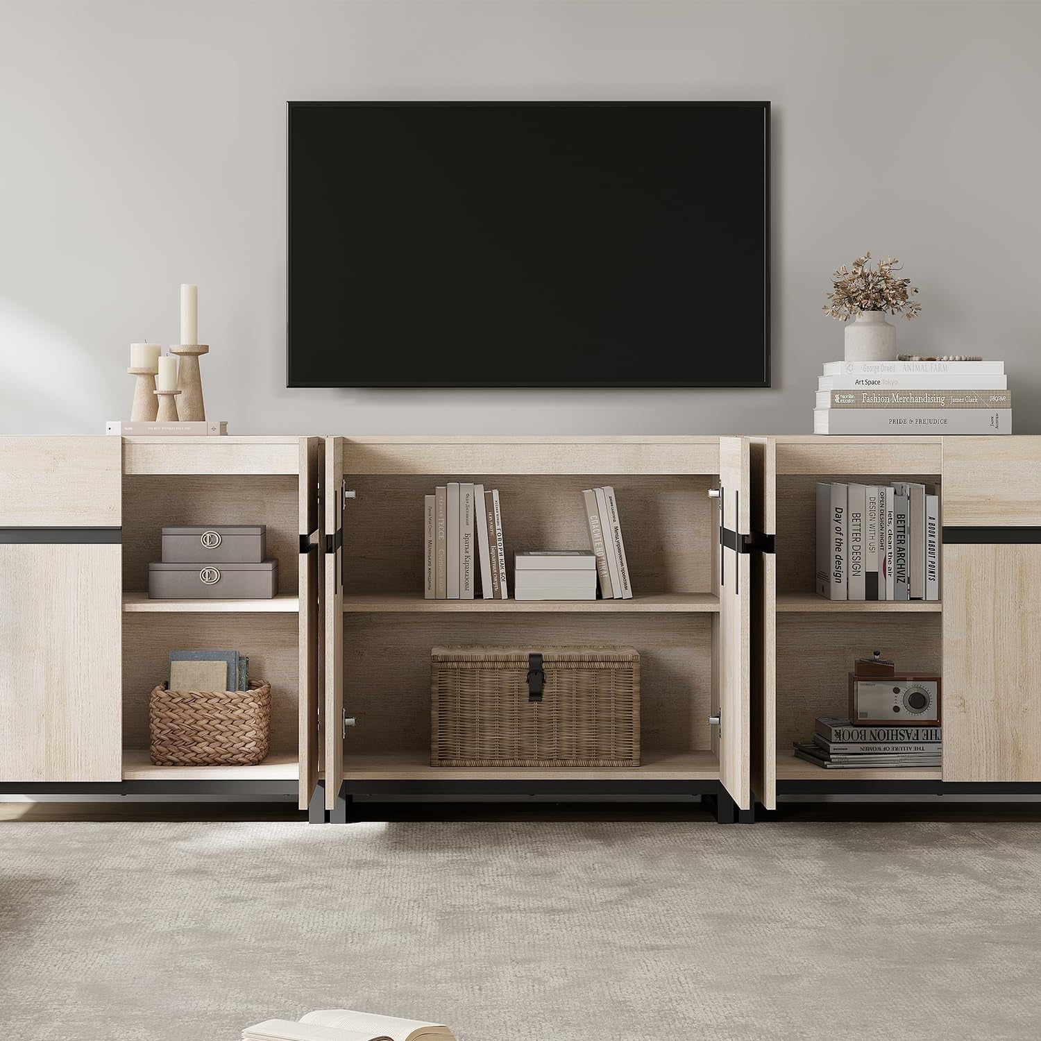 WAMPAT Modern TV Stand for TVs Up to 110 Inch, 3 in 1 Wood Entertainment Center Console Table With Adjustable Shelves and Metal Base for Living Room, Bedroom, Light Oak