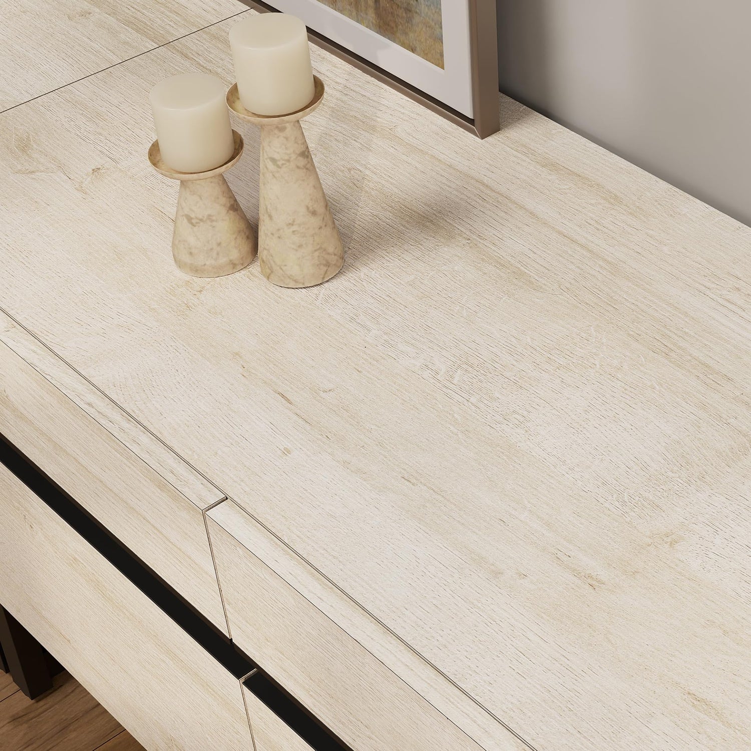 - 【Modern Design】This modern TV stand features concealed door handles for a neater appearance. Adorned with a oak grain design, it seamlessly complements various decor styles, from modern simplicity to American country and tranquil pastoral themes. It's an excellent addition to elevate your home's aesthetic.