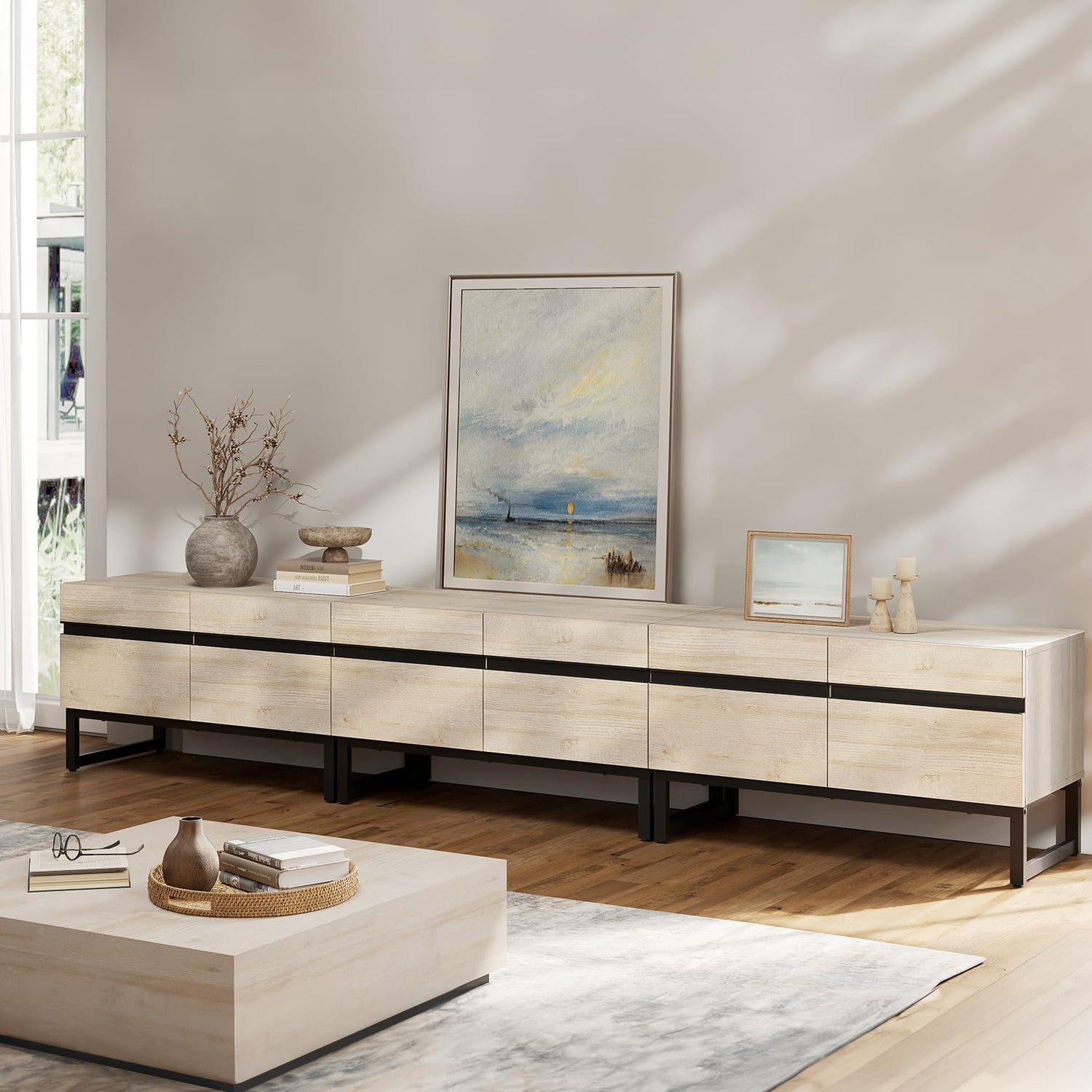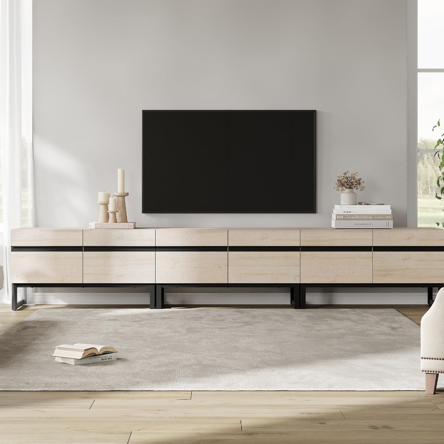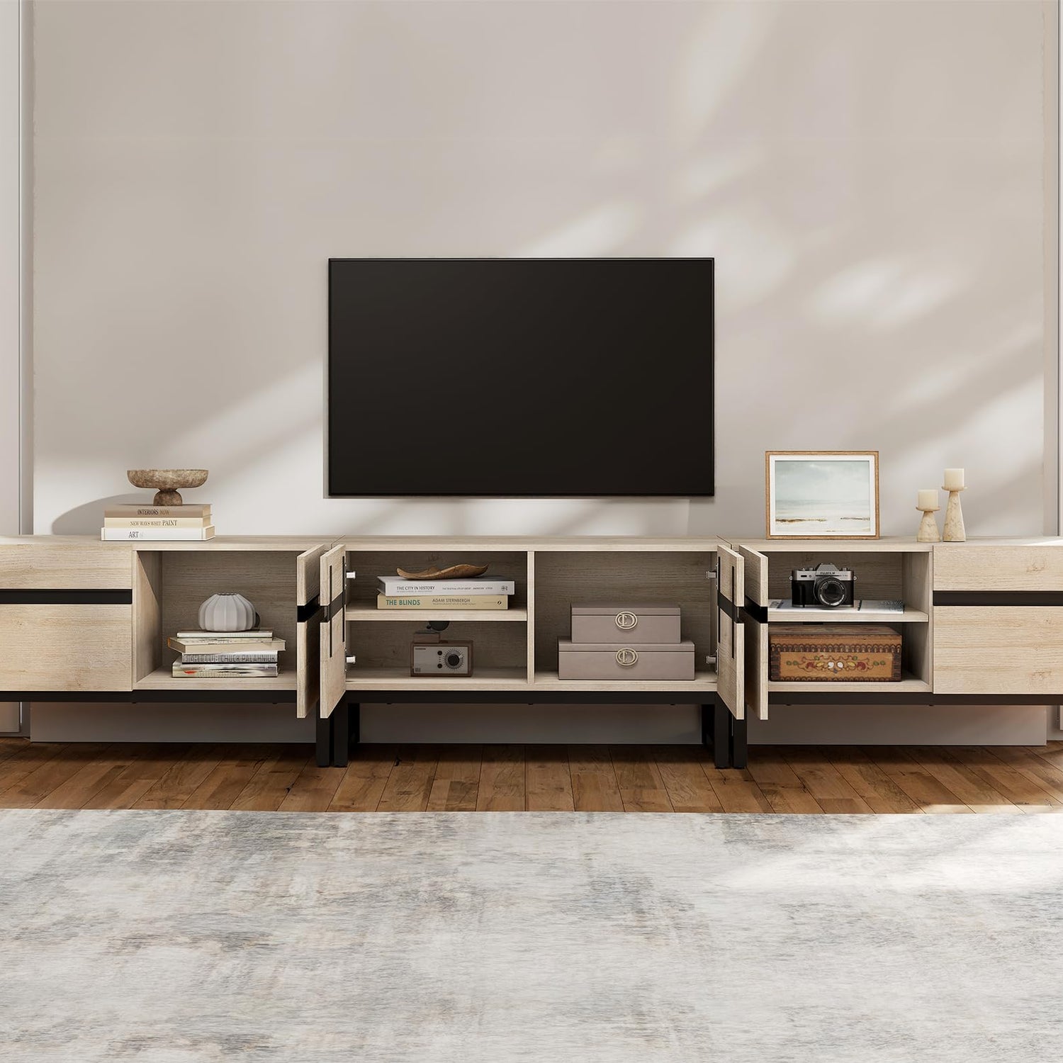 WAMPAT Modern TV Stand with Storage Cabinets for 110 Inch TV, Wood TV Entertainment Center TV Media Console Table with Metal Leg for Living Room,Light Oak