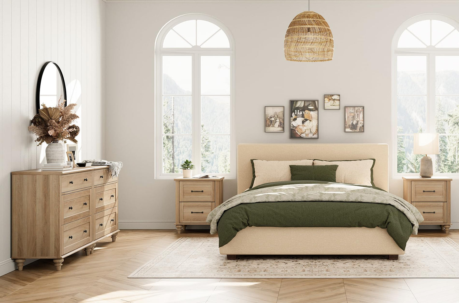 - Chic Farmhouse Nightstand: The vintage wood grain surface, metal handles, and retro color create this farmhouse side table and make it a bedroom staple. And the hardwood gourd shaped legs make the nightstand more unique and stylish, exuding a vibe of elegance.