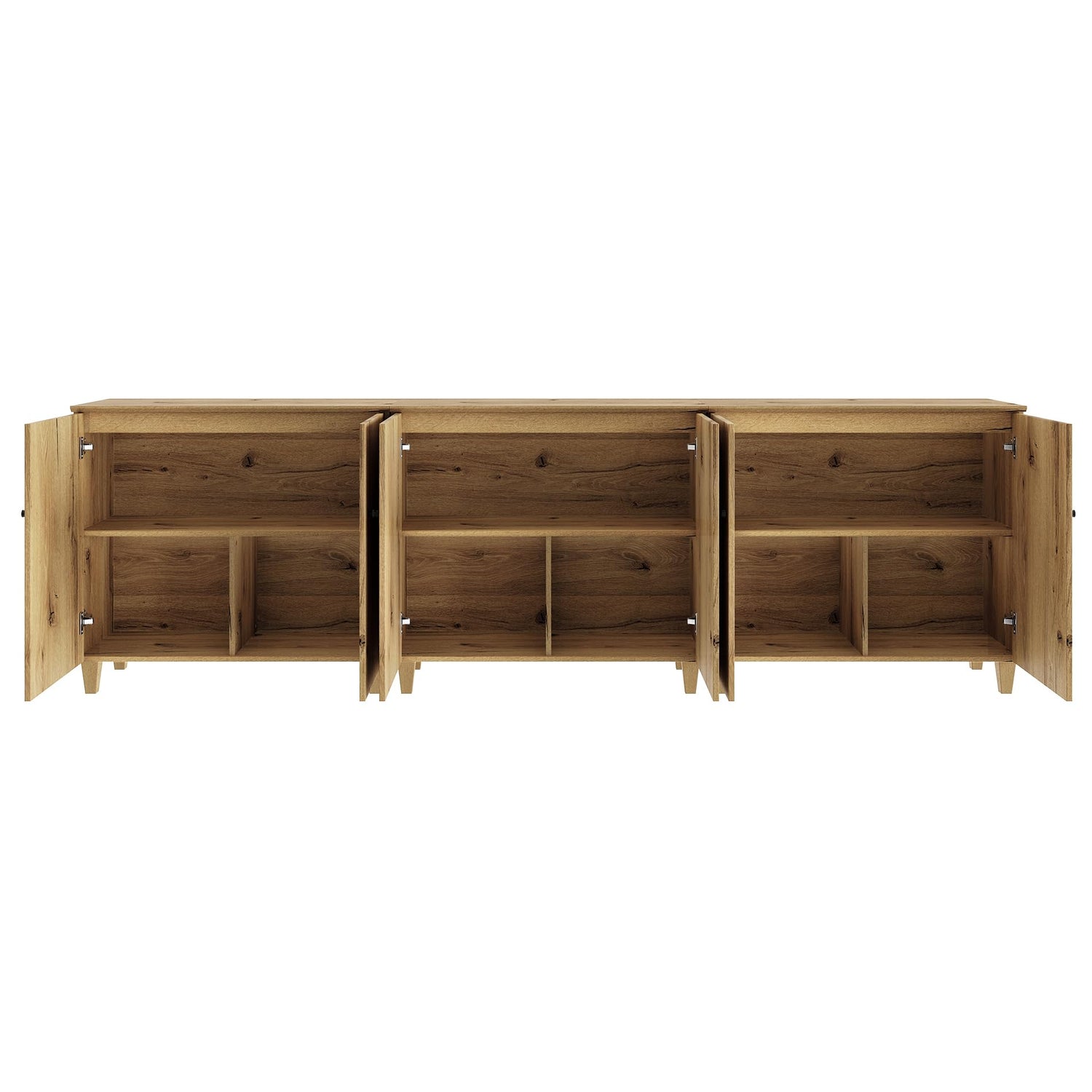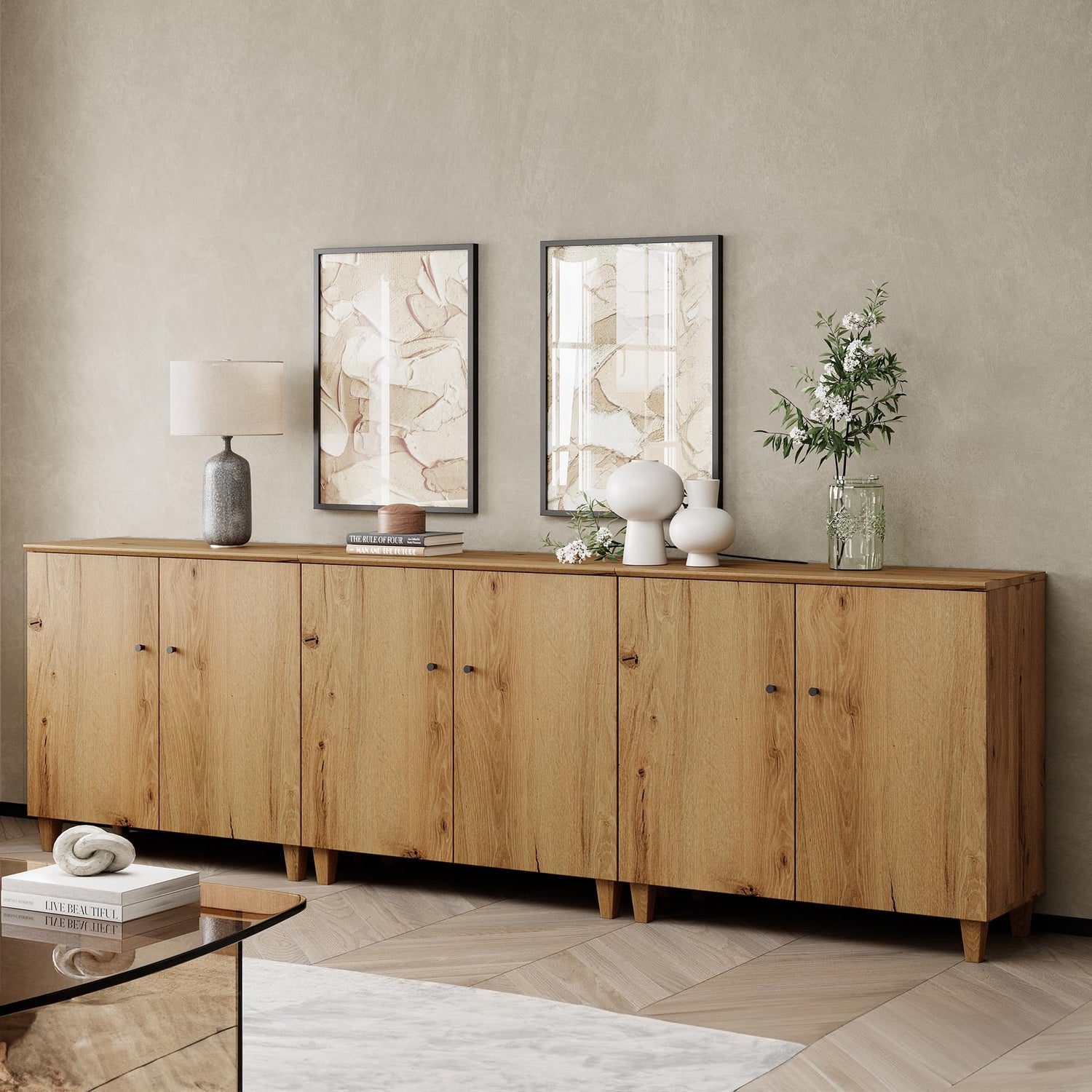 - Stylish TV Cabinets: More than just a storage solution, it also creates an eye-catching focal point in your living room or bedroom. Combined with oak brown wood finish surface and black coated knobs add a touch of elegance to any room. It also can be used separately as a storage cabinet, buffet table, coffee bar, or sideboard in the kitchen, dining room, entryway, or hallway