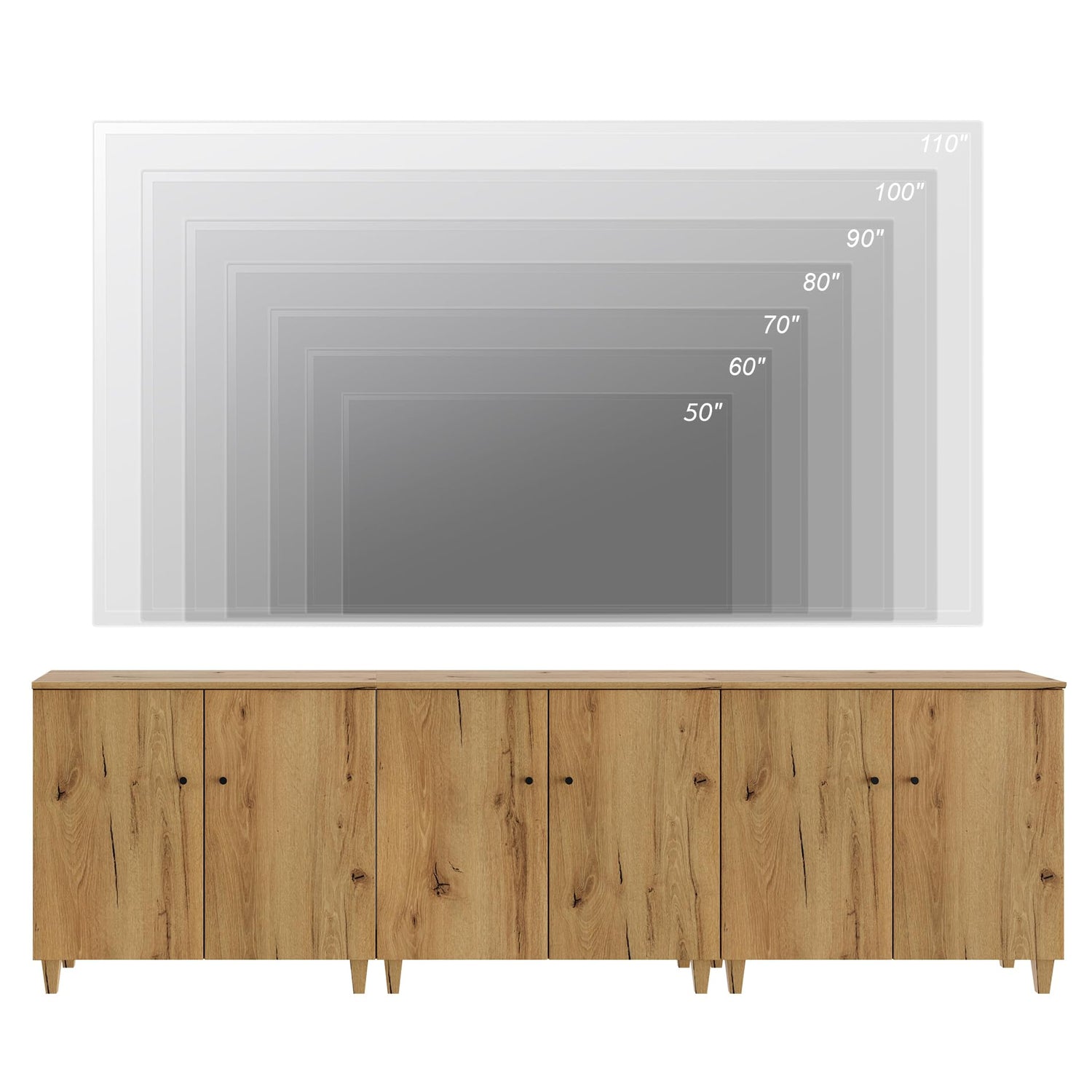 Details: WAMPAT TV Stand Cabinets for 85+ Inches TVs, 3-in-1 Wood Entertainment Center with Doors and 9 Compartments, 106" Modern Media Console Table with Storage for Living Room Bedroom, Oak Brown