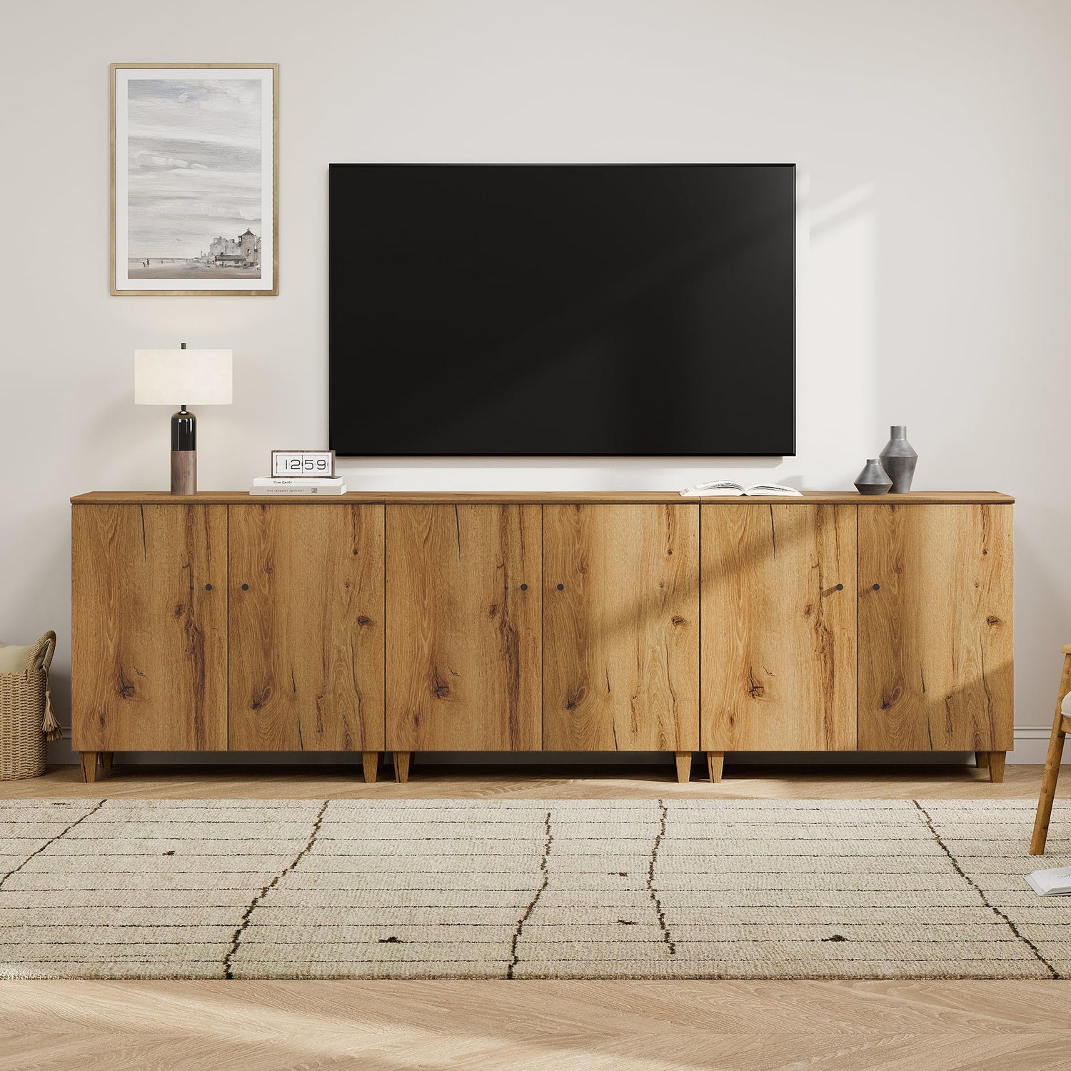 - Sturdy and Durable Media Console: Strong engineered wood with solid wood legs which make it sturdy and durable, it also comes with anti-tip kits to keep your little ones safe. Note: the doors of each cabinet can be aligned by adjusting the hinges, please refer to the assembly manual for details or contact us for help