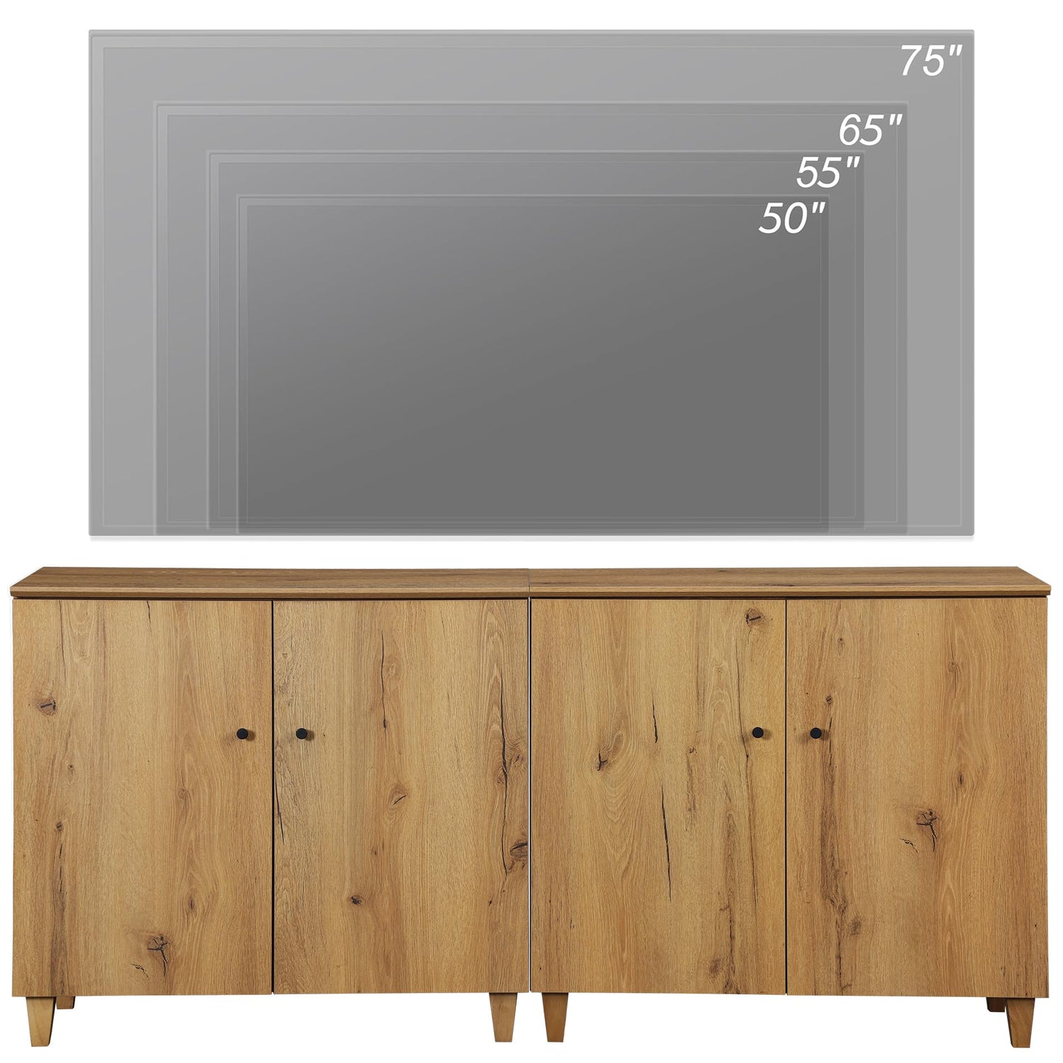 Details: TV Stand Cabinets for TVs up to 75 Inches, 2-in-1 Wood Entertainment Center with Doors and 6 Compartments, 70.8" Modern Media Console Table with Storage for Living Room Bedroom, Oak Brown