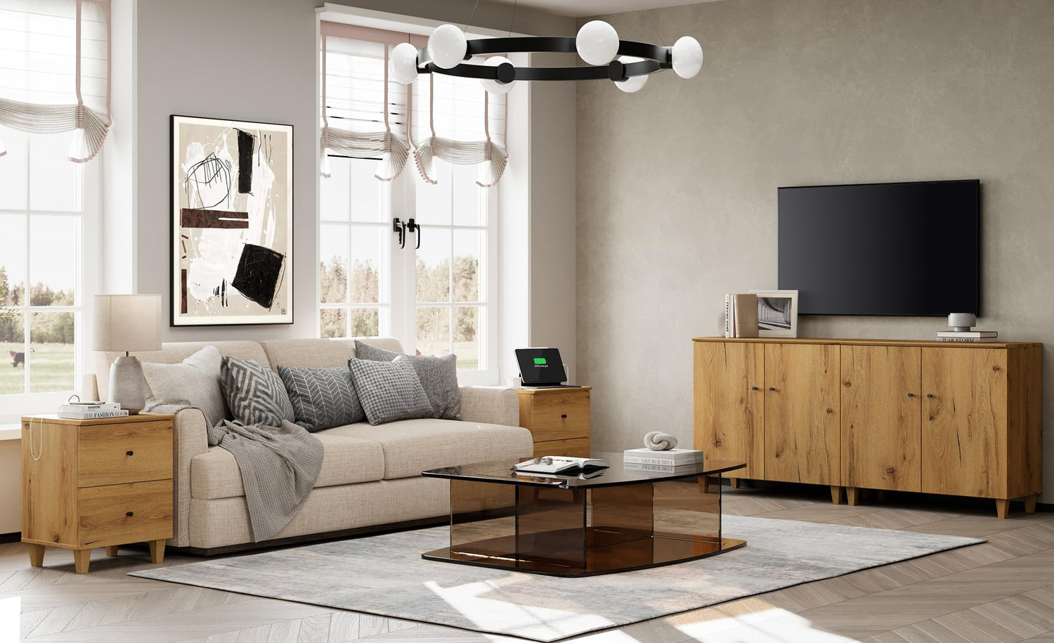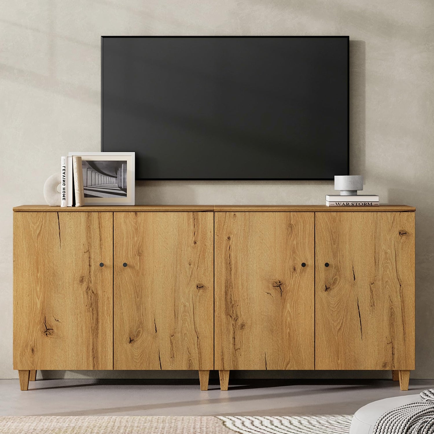 - Stylish TV Cabinets: More than just a storage solution, it also creates an eye-catching focal point in your living room or bedroom. Combined with oak brown wood finish surface and black knobs add a touch of elegance to any room. It also can be used separately as a storage cabinet, buffet table, coffee bar, or sideboard in the kitchen, dining room, entryway, or hallway