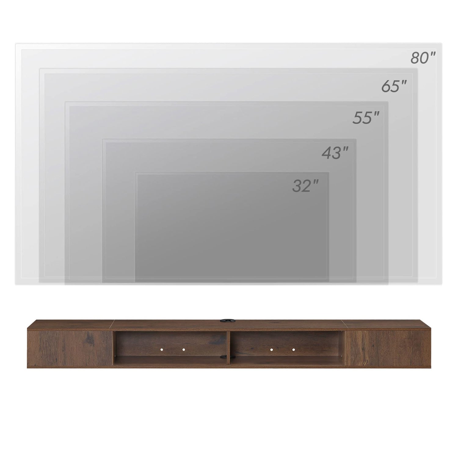 - 【MULTI-FUNCTION】 Floating brown tv stand media shelf can complement any style of room or furniture. Wall-mounted TV stands are both functional and decorative, tv stand long modern,modem rack shelf!It will add elegance and vitality to your bedroom, living room, media room, and office.