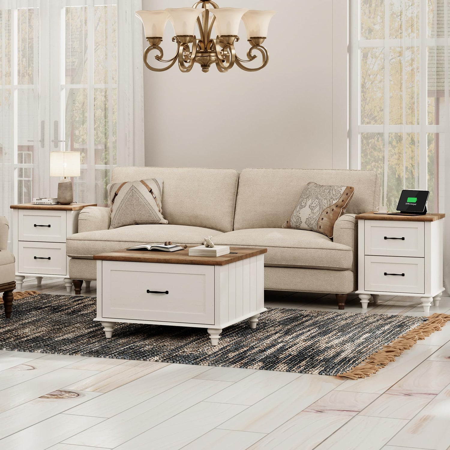 - 【Chic Modern & Farmhouse Style】The square coffee table is designed with white body and gourd legs, is a great combination of modern and vintage farm style. Especially, the unique design of the front and back side of the coffee table can be used as normal without distinguishing the front and back and worrying about the back is not beautiful. Overall Dimension: 30"×30"×18"(L×W×H).