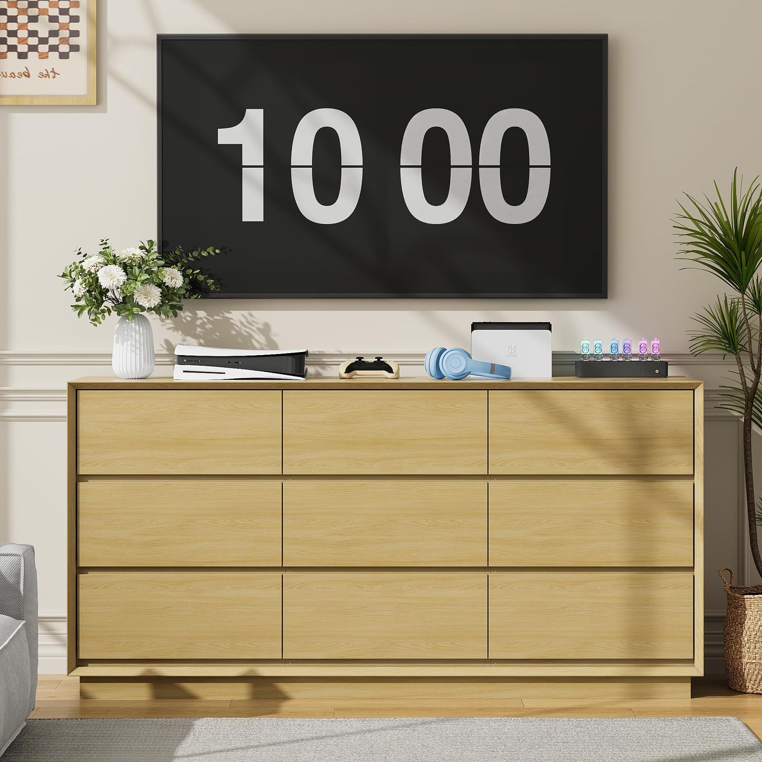 wanan 63'' Wooden Dresser for Bedroom, Large Dresser with 9 Deep Chests of Drawers for Bedroom, Living Room, Closet