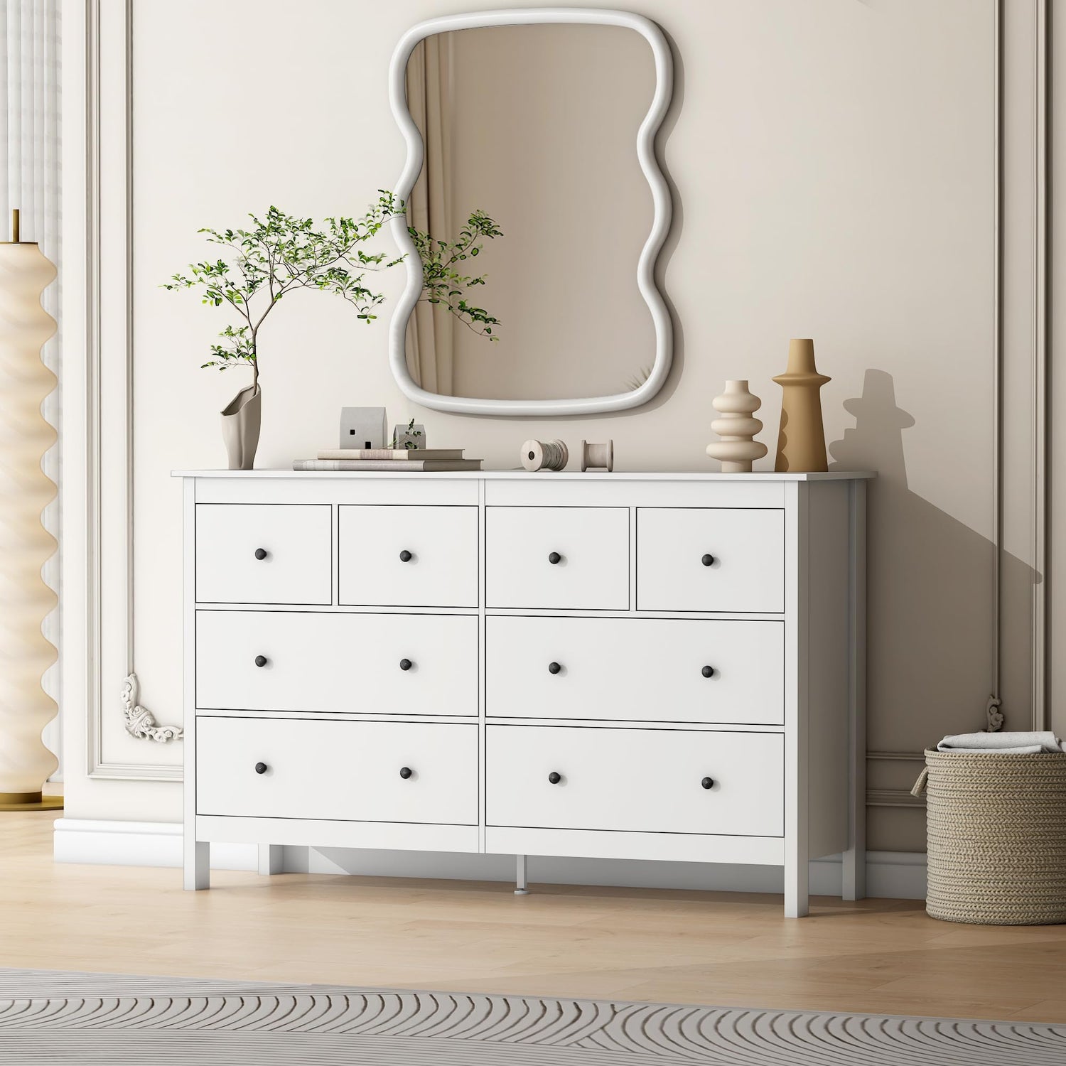 wanan 8 Drawer Dresser, 50" Modern White Dresser &Chests of Drawer, 8 Drawer Wide Dressers for Bedroom