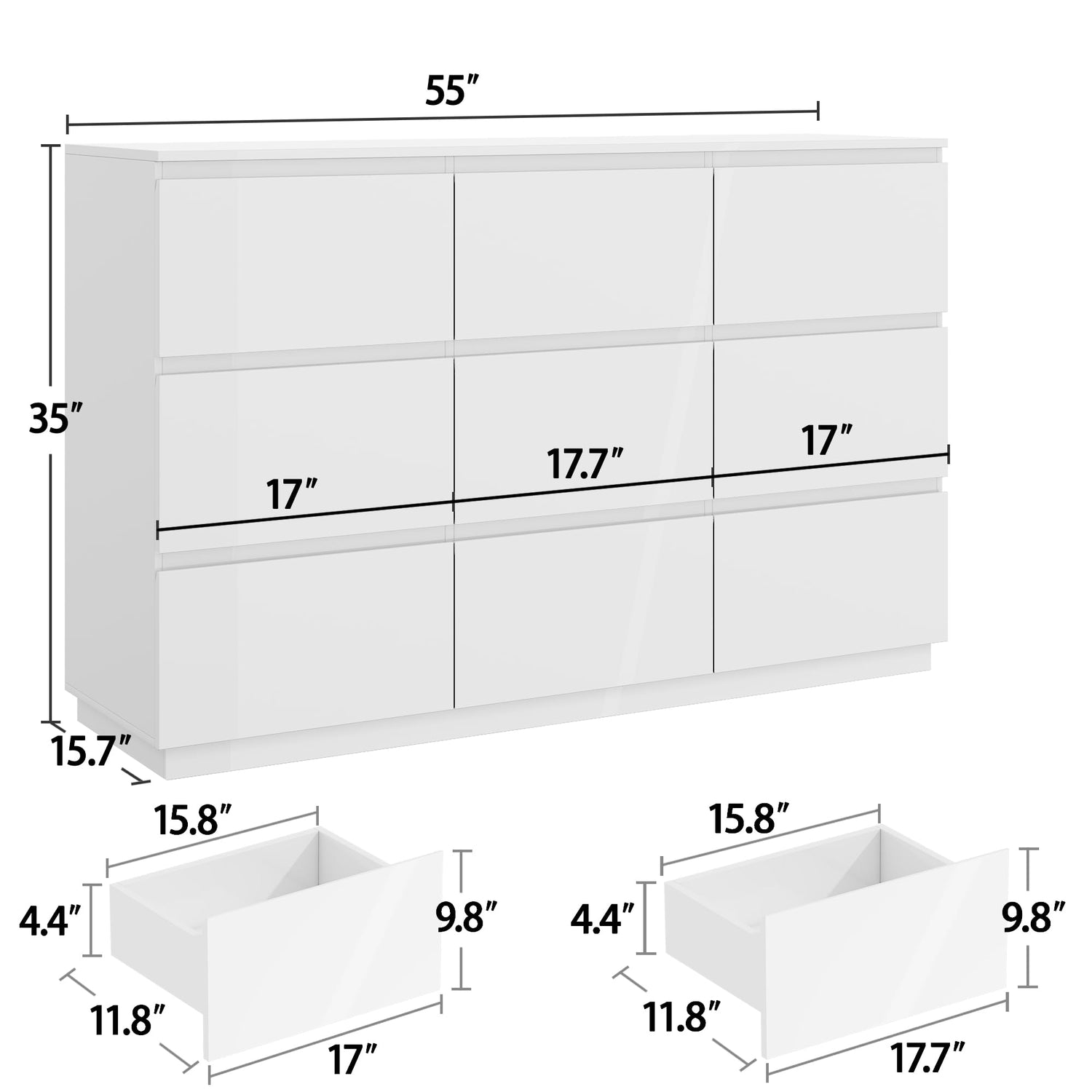 - Modern Glossy Style: The white glossy 9 drawers dresser is especially suitable for modern home, whether it is placed in the living room or bedroom, it can add a stylish and noble aesthetic, while up to nine big storage drawers can also fully meet the storage needs and make the home more tidy