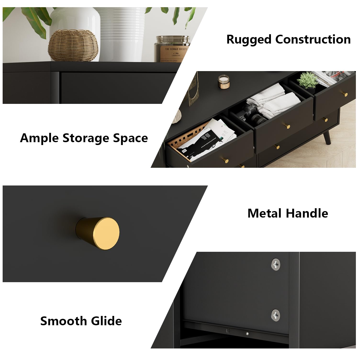 - 【Charming Modern Design】: The black finish gives a clean and bright look to your room, and the gold metal handles, complement the black wooden frame beautifully, adding a chic and contemporary look. While the modern design suits any style of interior, whether you need a chest of drawers with storage for your bedroom, nursery or living room, this 7 drawer dresser is the perfect choice