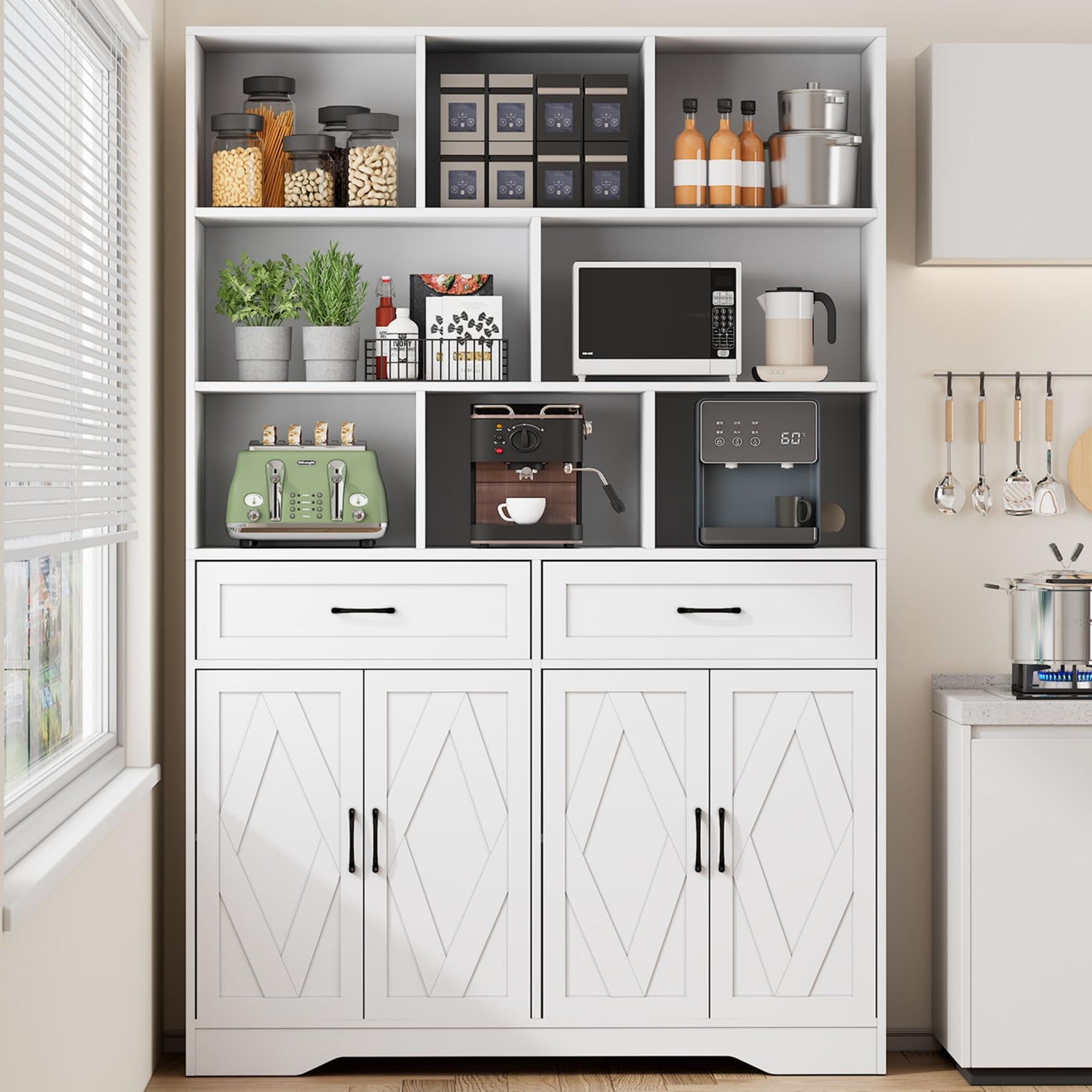 - 【Smart Features for Convenience】 This Bookcase includes 2 large drawers, 4 door shelves, and 8 shelves for storage. The built-in cable management hole keeps appliance cords tidy, allowing you to use Printer on the Storage Cabinetwithout cluttering your countertops.