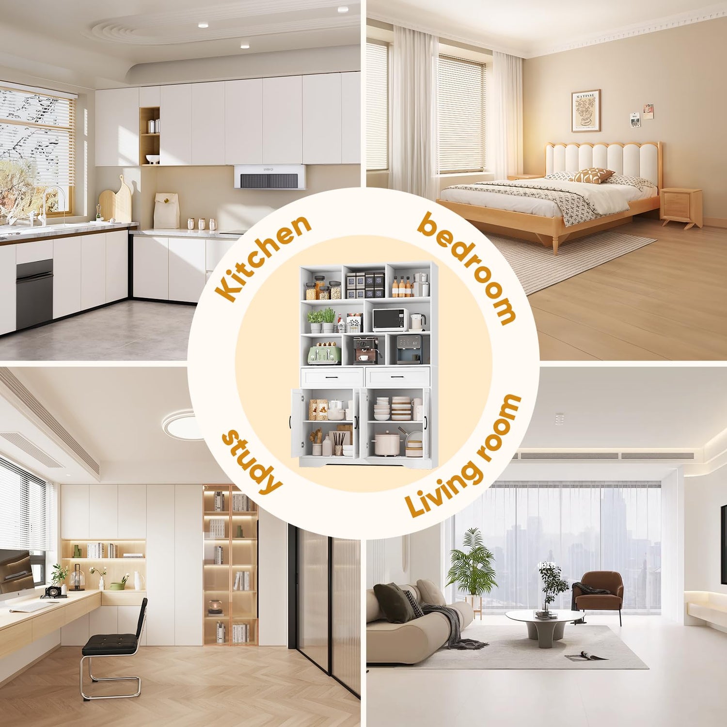 - [Multi-functional Bookshelf] This bookshelf adds a modern touch to any room. It not only serves as a storage cabinet for home offices, living rooms, or bedrooms—perfect for displaying books and family photos—but its versatile design also makes it an ideal choice as a sideboard for dining rooms, a buffet server, or even a kitchen pantry storage solution.