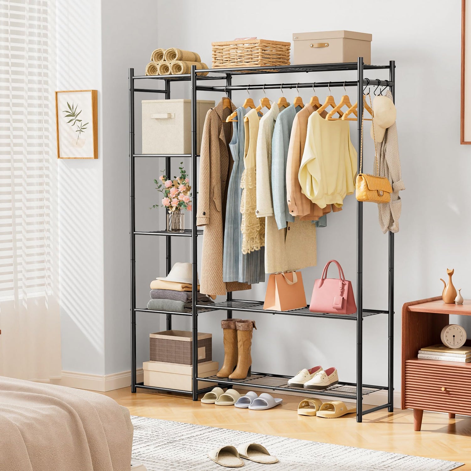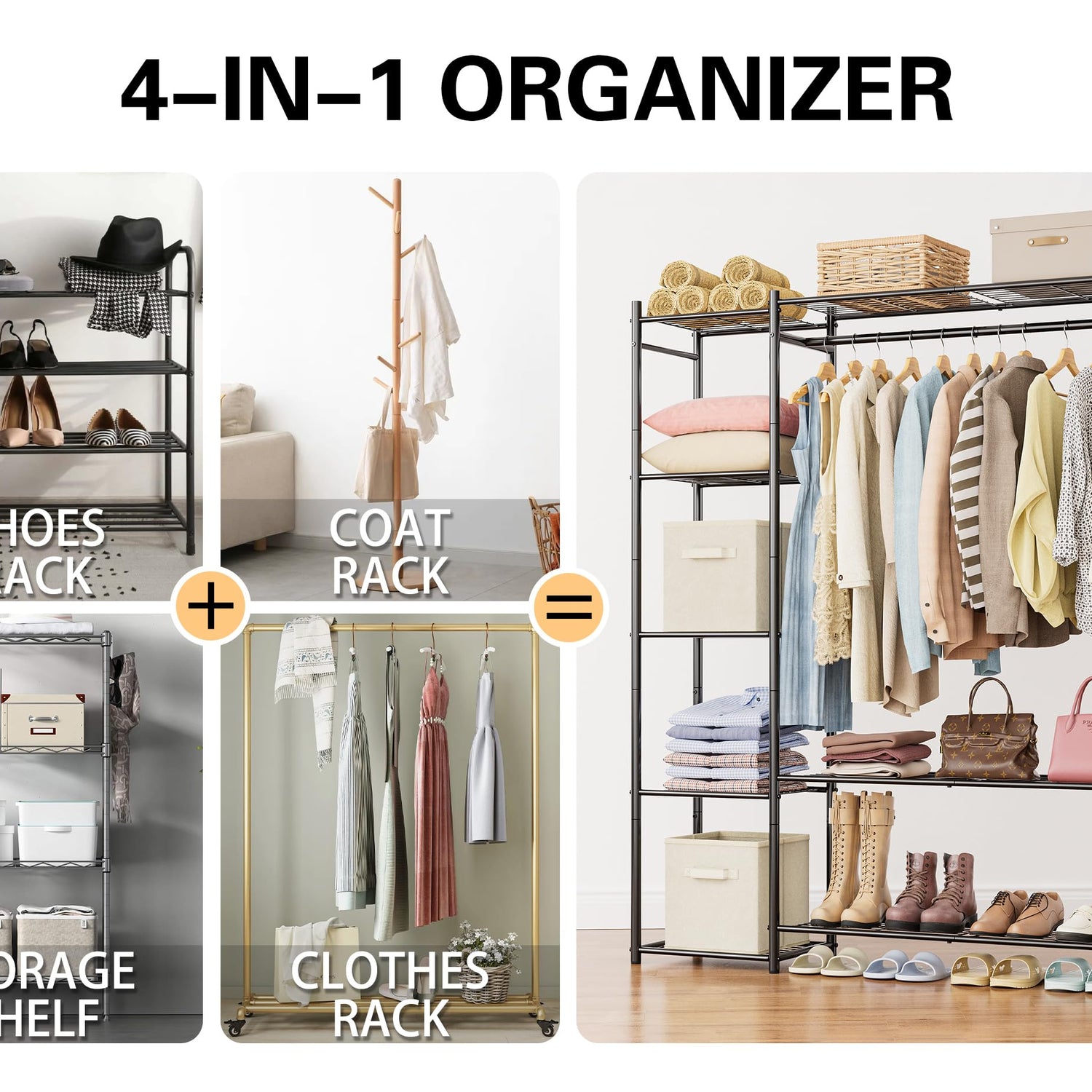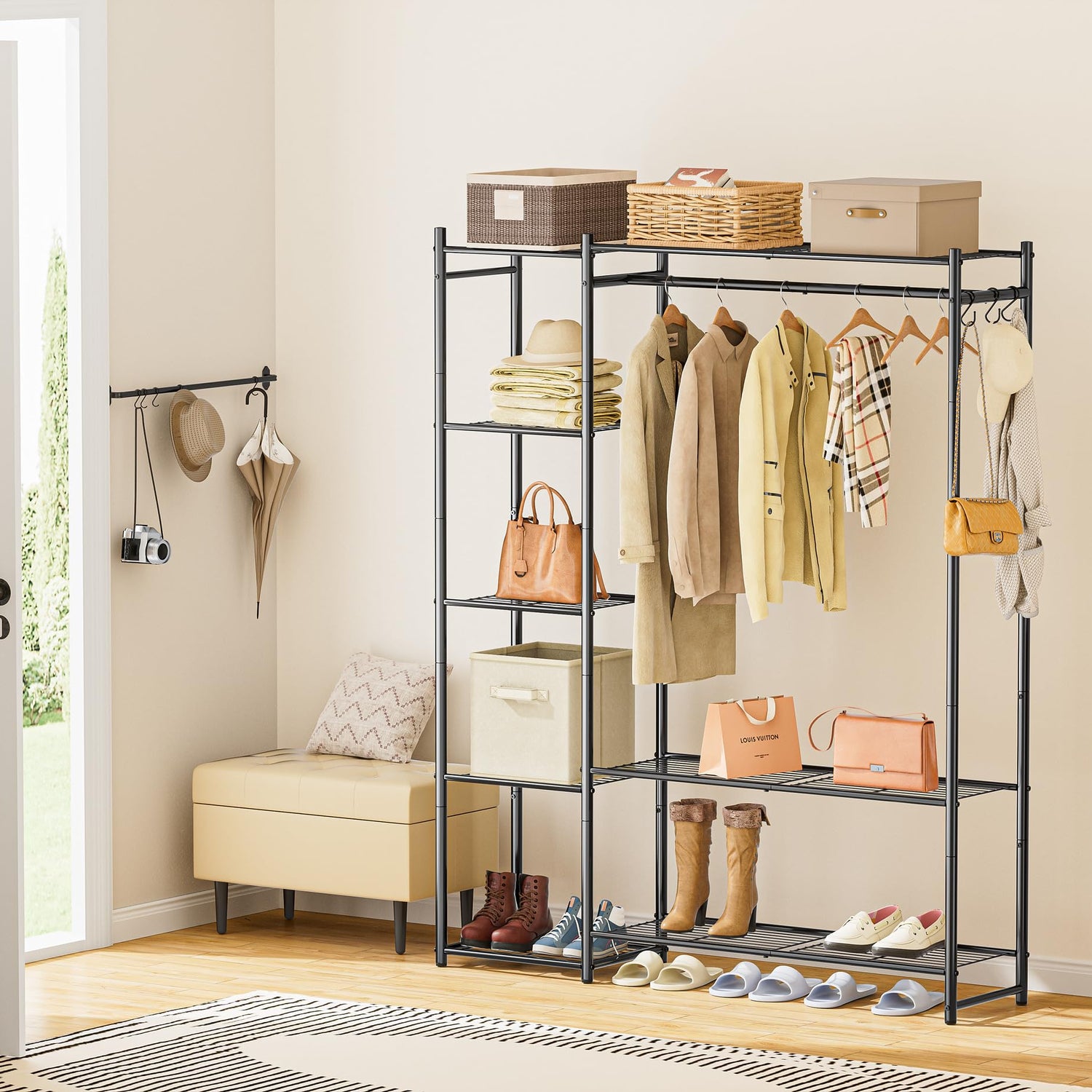 Wardrobe Closet,Portable Clothes Rack with 4 Tiers Shelves,Freestanding Closet Organizers and Storage System with Hanging Rods,Steel Clothing Rack Suitable for Cloakrooms,Bedrooms,Entrances,etc.Black