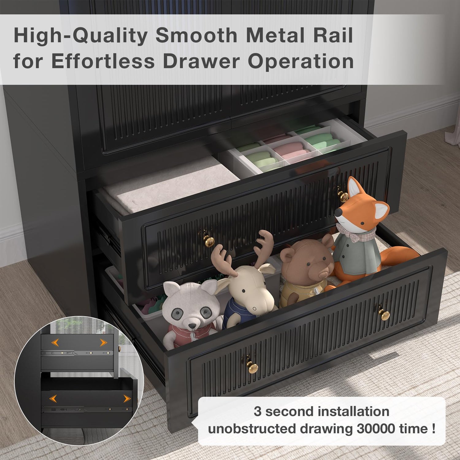 • Ample Hanging & Drawer Storage: Includes a metal hanging rod for long garments like dresses, suits, and coats, plus two spacious bottom drawers for clothes and personal items—perfect as a closet organizer and storage solution