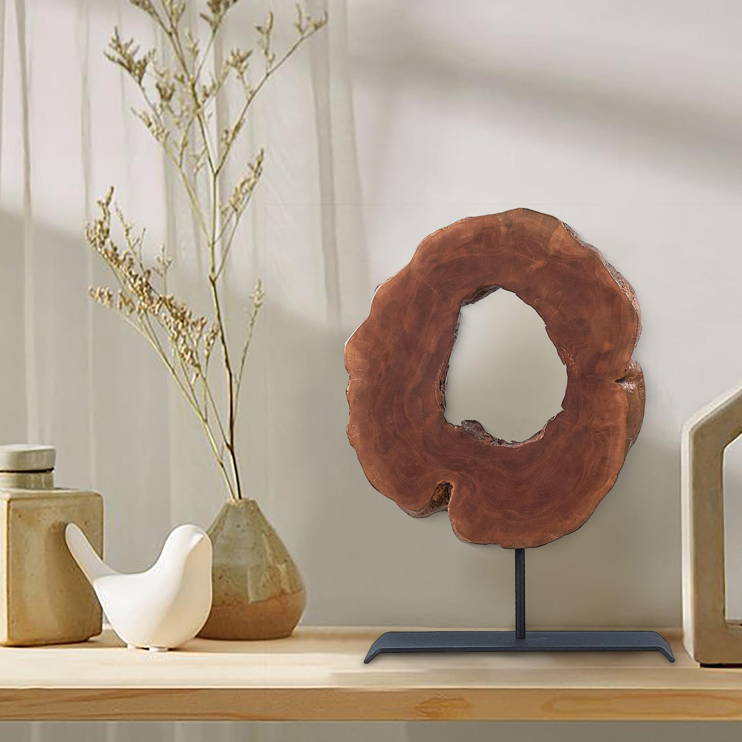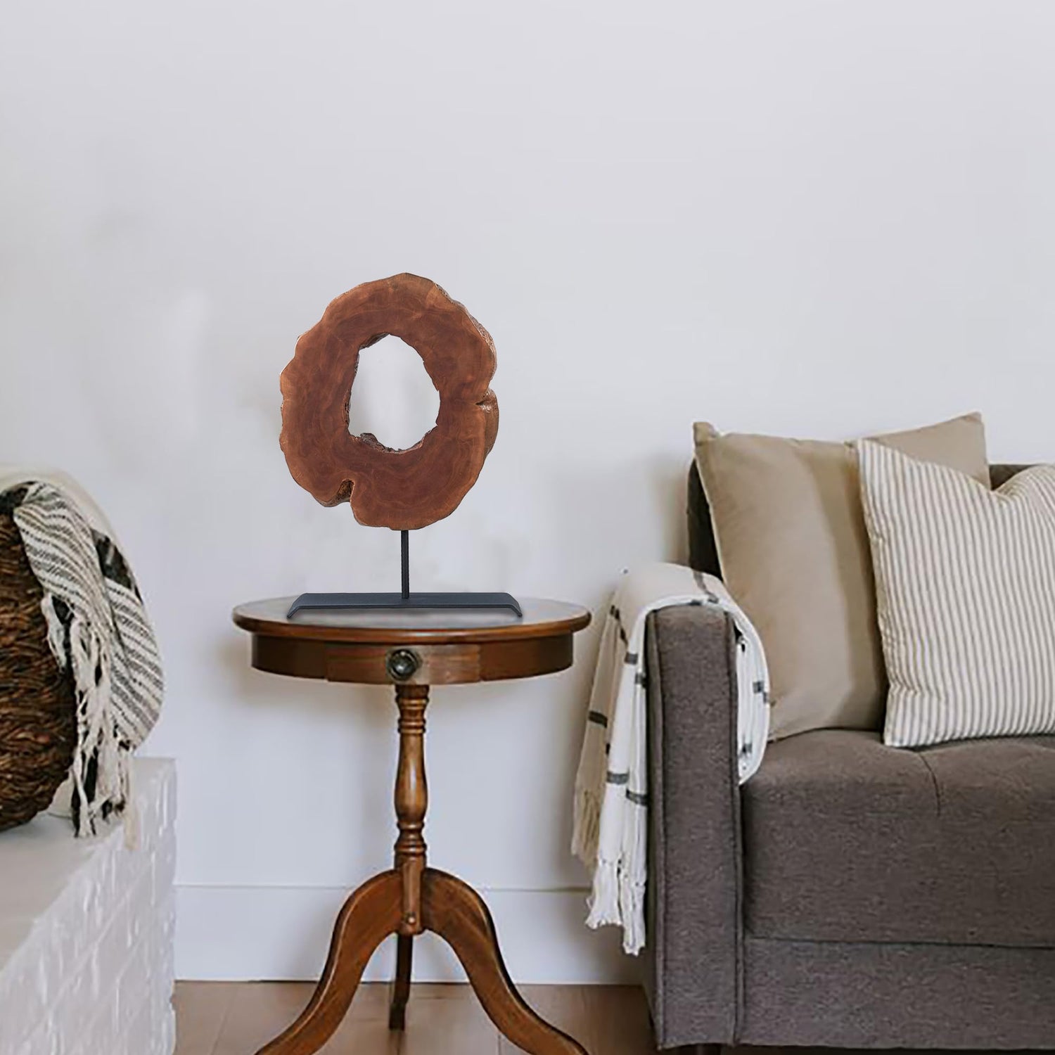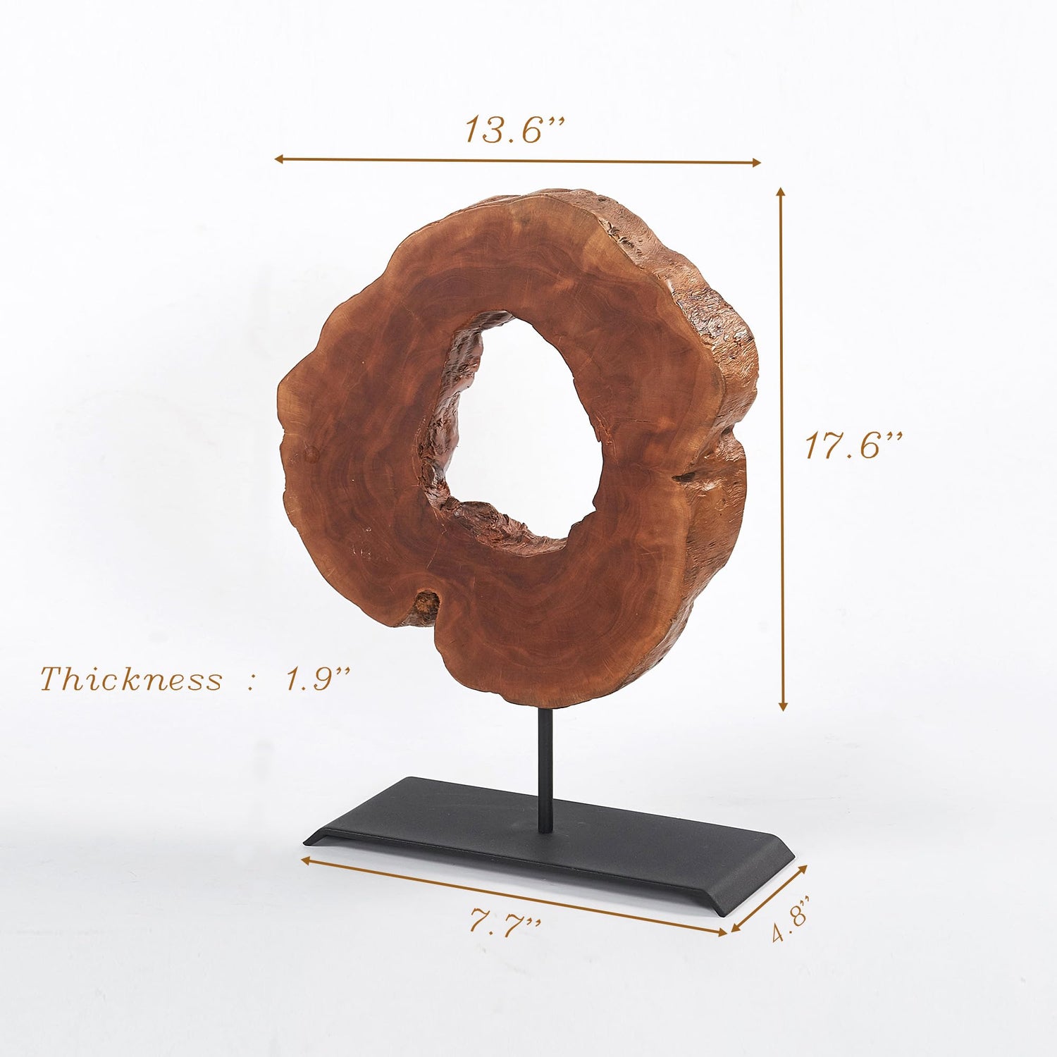 Warmaxx Wood Slice Statues on Stand Object 13.6" x 17.6" x 1.9" Handmade Solid Lychee Sculpture Tabletop Farmhouse Decoration Desk Decor for Home Living Room Office