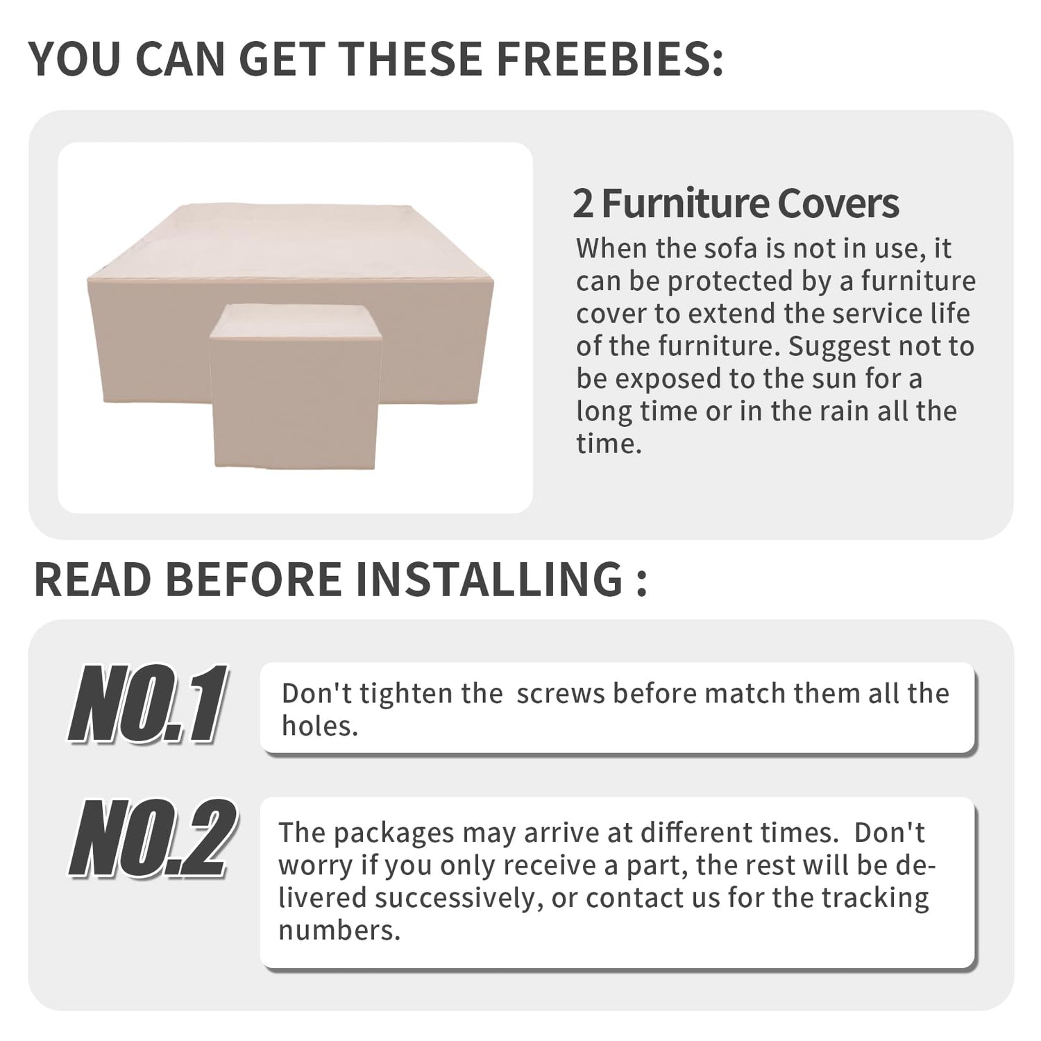 - PRACTICAL DESIGN: This furniture set come with a storage box, when not in use the furniture, you can put the cushions into it to extend the service life. Modern and modular design suitable for any decoration style, can be freely rearranged into different combination as you want to suit any space, whether indoor or outdoor, such as patio, porch, backyard, deck, poolside, garden, lawn, etc.