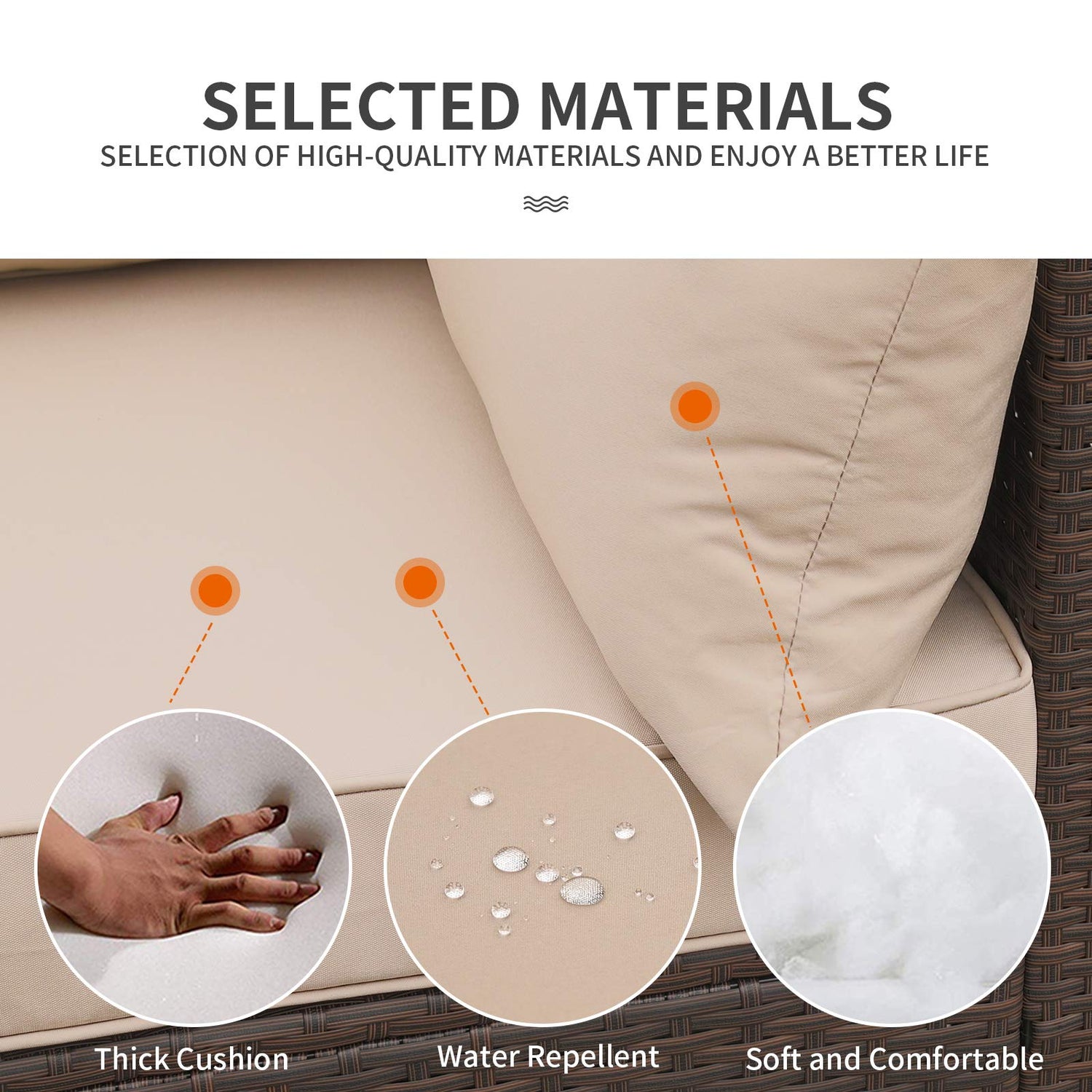 - COMFORTABLE: The non-slip seat cushions filled with 4" thick high resilience sponge for superb comfort and durable, breathable cushion cover with zipper is 250G polyester water repellent,UV-resistant, easy to remove/replace and washable.