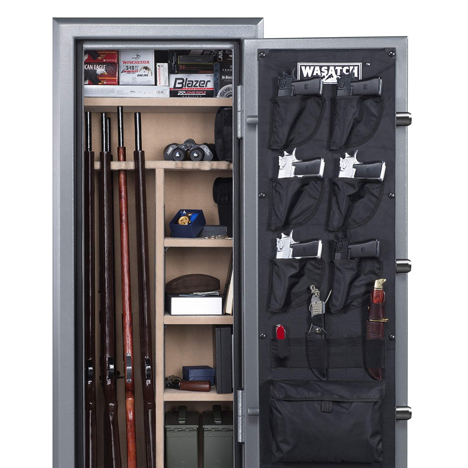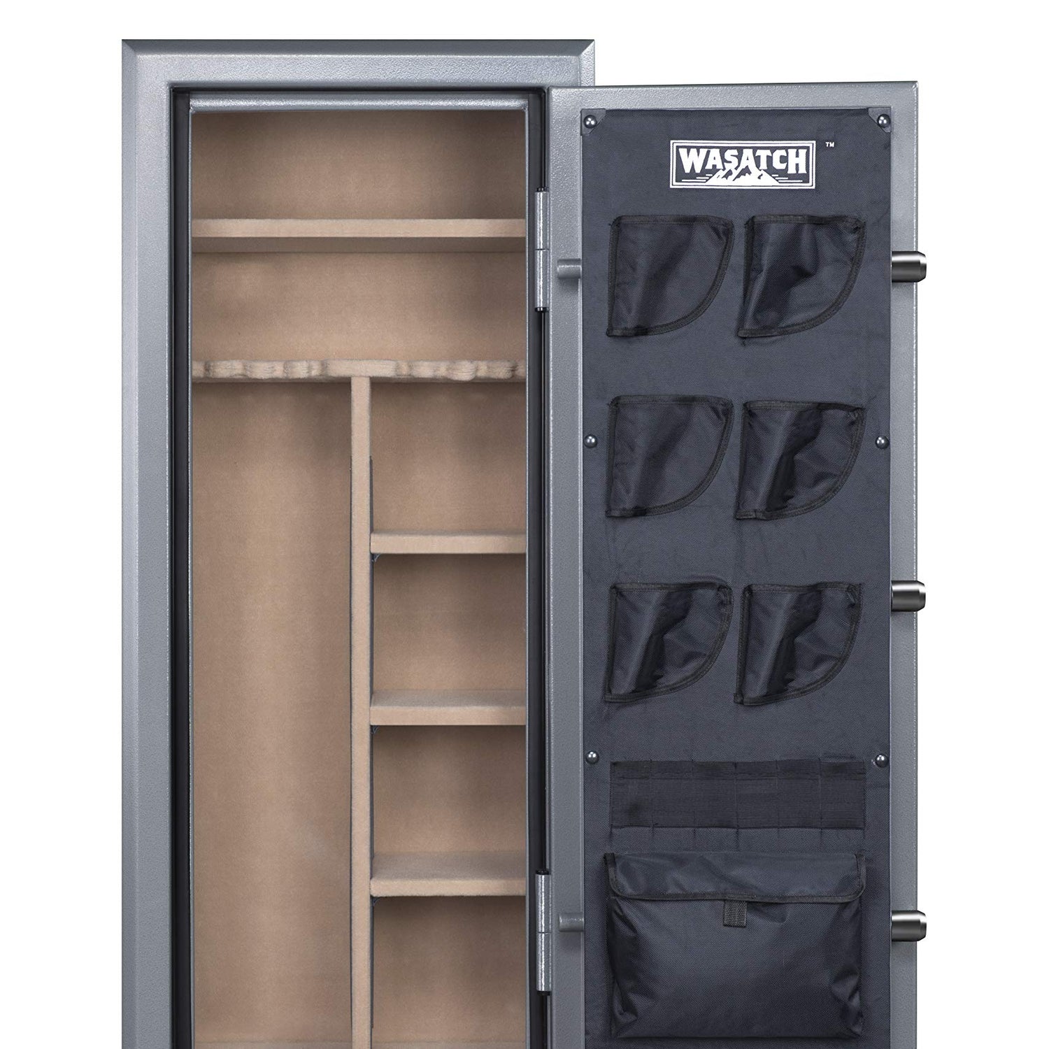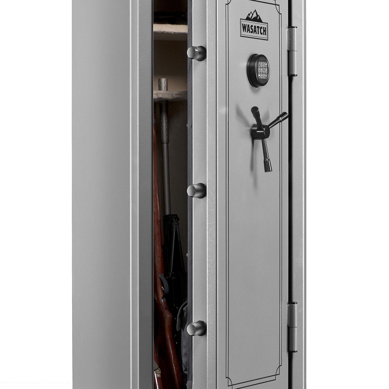 Details: Just like the Wasatch Mountain Range, our Wasatch Long Gun Safes provide the strength, beauty and appreciation, you expect in your safe. Each Wasatch Safe comes with a 1400 degree/45 minutes fire rating and large, 1. 5" live action locking bolts to provide great security in protecting your guns and valuables. To match the strength and power of the Wasatch Mountain Range, these safes are also waterproof to further protect your items. All of the Wasatch Safes come with built-in Door Storage to maximize your secure storage options. The Wasatch series of safes provide unmatched features for the price.