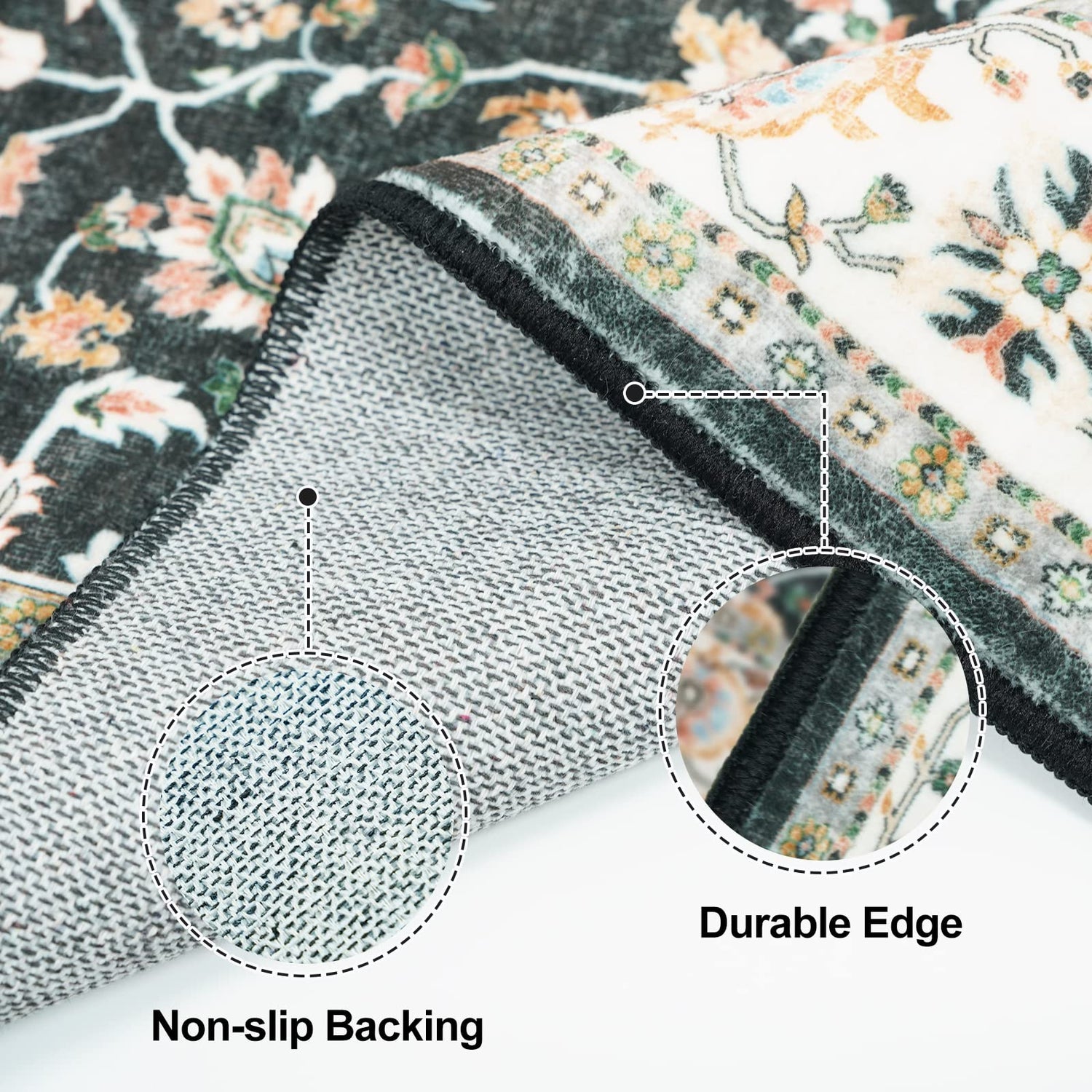 - 【Cling to the Floor】 There is a non slip back with no need for a separate rug pad. The runner rug is truly non slip and holds onto the slick surface underneath and prevents the 2x3 rug non slip from sliding out of place. Machine serving is a finishing process that gives vintage rug edge a clean, uniform appearance. No curl-up on the edges.