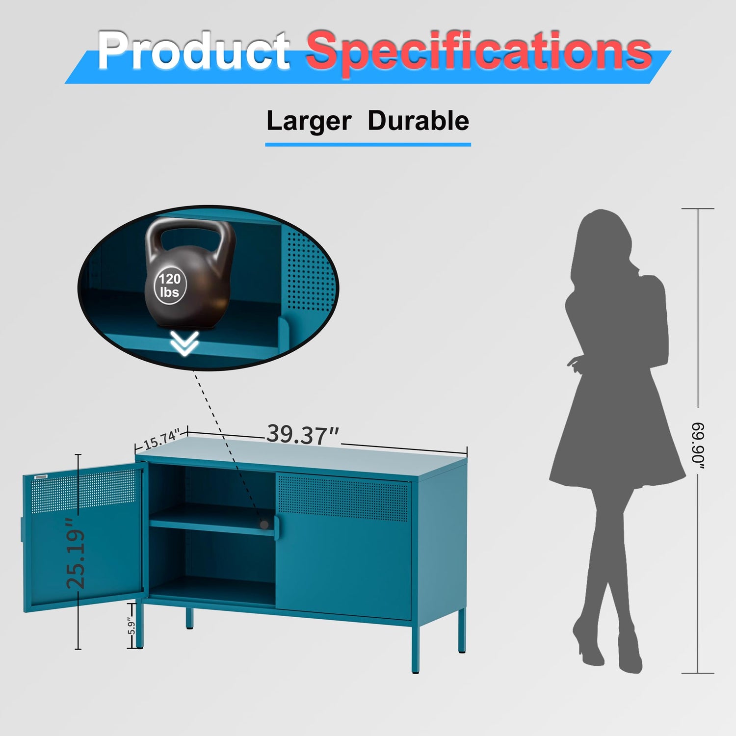 Washsemba 2 Door Storage Sideboard, Metal Storage Cabinet with 2 Adjustable Shelf,Multipurpose Metal Accent Cabinet for Office Home,Music Studio (Peacock Blue, 25''H)
