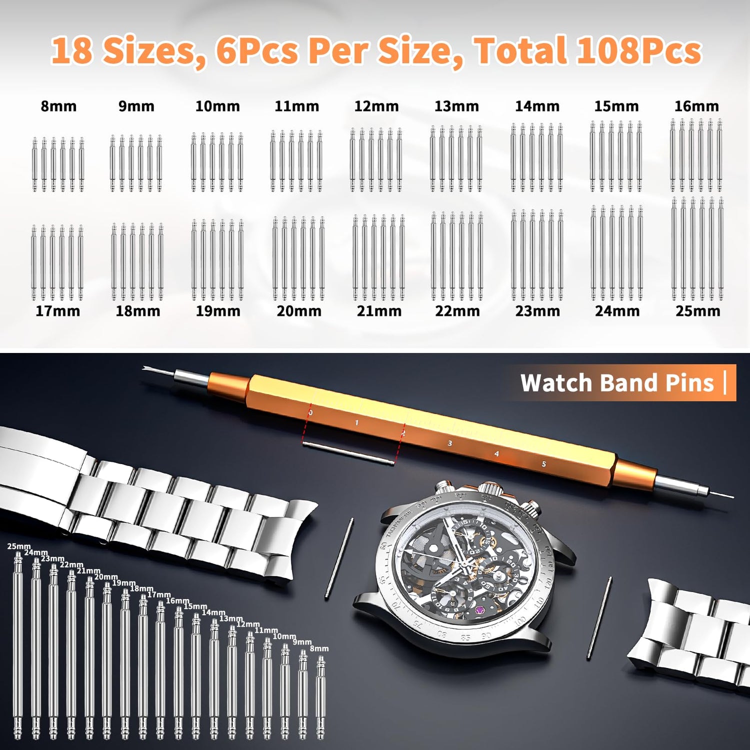 - INCLUDED XL WATCH WRENCH CASE OPENER up to 55MM, easy to open groove type oversize watches. This kit is perfect for common watch trouble, like opening watch back cover, watchband adjustment, changing watch batteries, watch band remover, watch resize, watch pins remover. You will never pay pricey watchmaker fees again