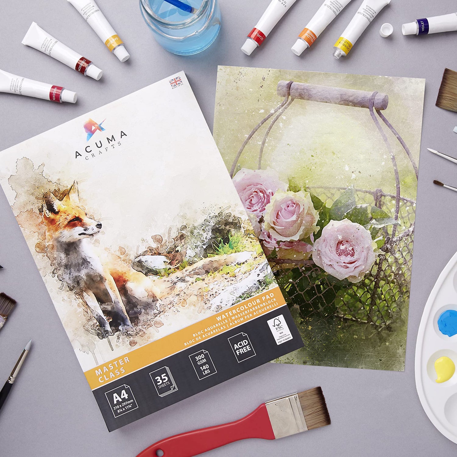 - Made in UK - Premium Master Class Paper: The cold pressed watercolor paper is thicker & heavier (140 lb./300gsm) so it can sustain multiple washes without bleeding through