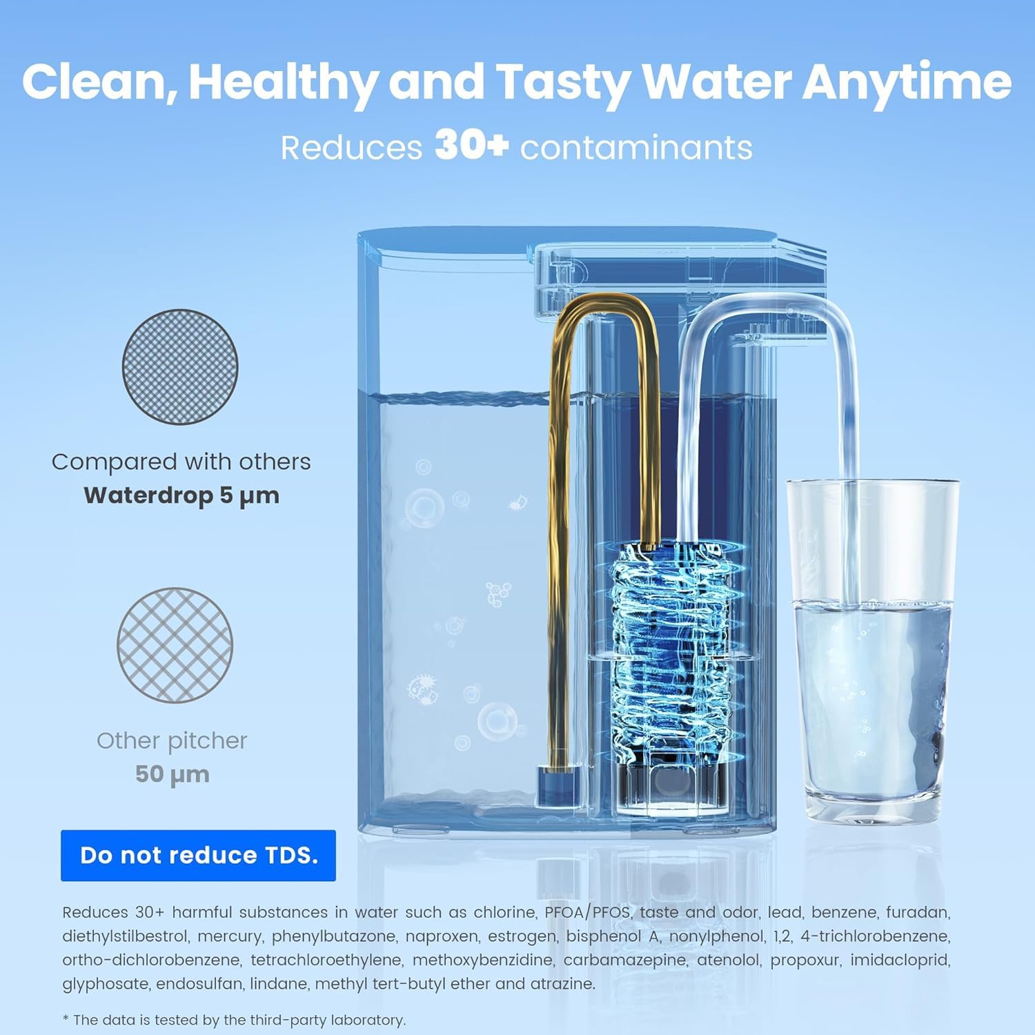 - 【Enjoy Alkaline Pure Healthy Water】Waterdrop Alkaline Electric Water Filter Pitcher has a 2X longer alkaline slow-release lifespan for long-lasting pH balancing of water, with an increase in initial pH of 1.5-2.5.