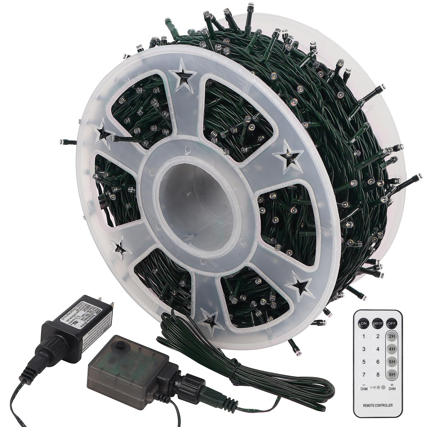 328ft Christmas decorative green wire string lights with 1000 warm white LED bulbs. Perfect for indoor and outdoor decorations.