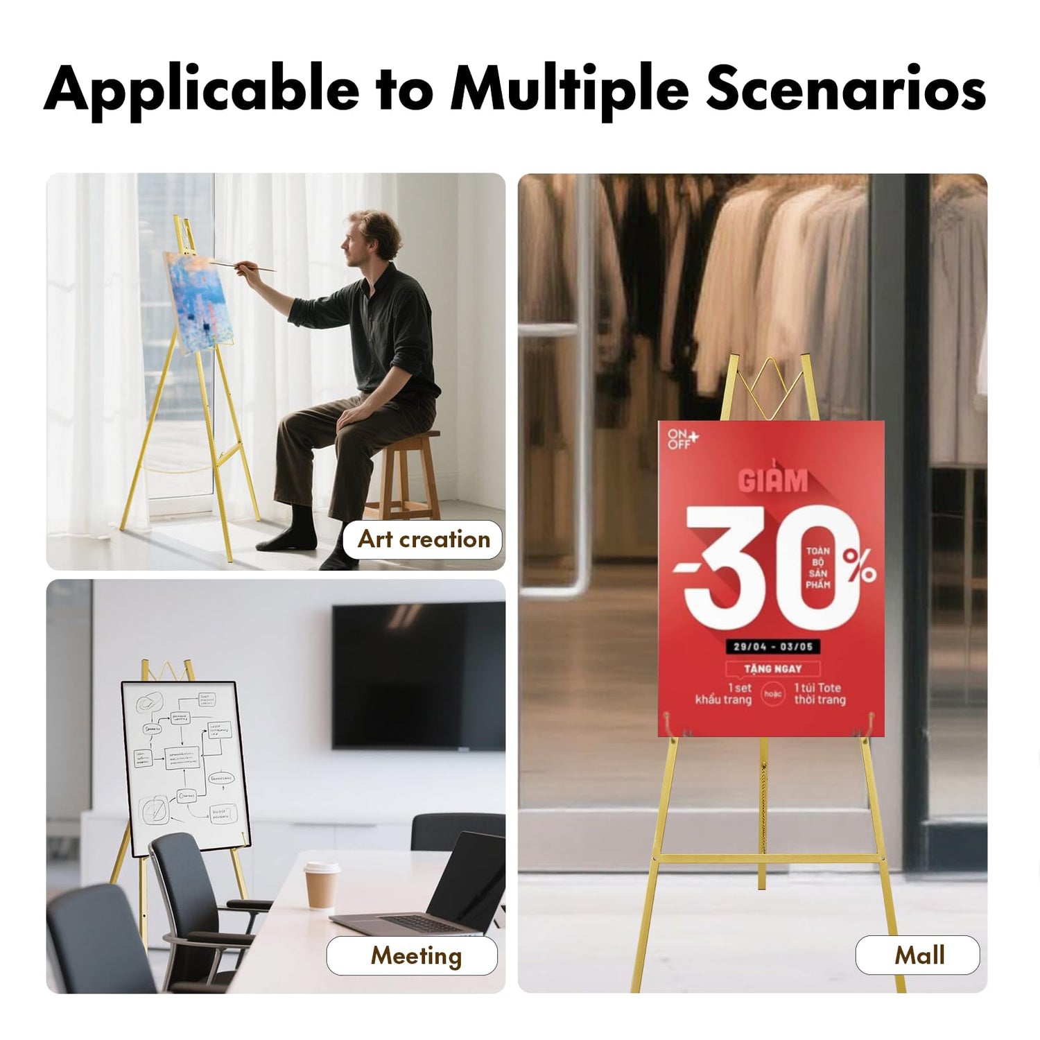 - 【Durable and Stable】Crafted from reinforced metal with discreet anti-slip feet that protect floors while holding firm. The triangular support structure quietly keeps your display steady, even on bustling event days
