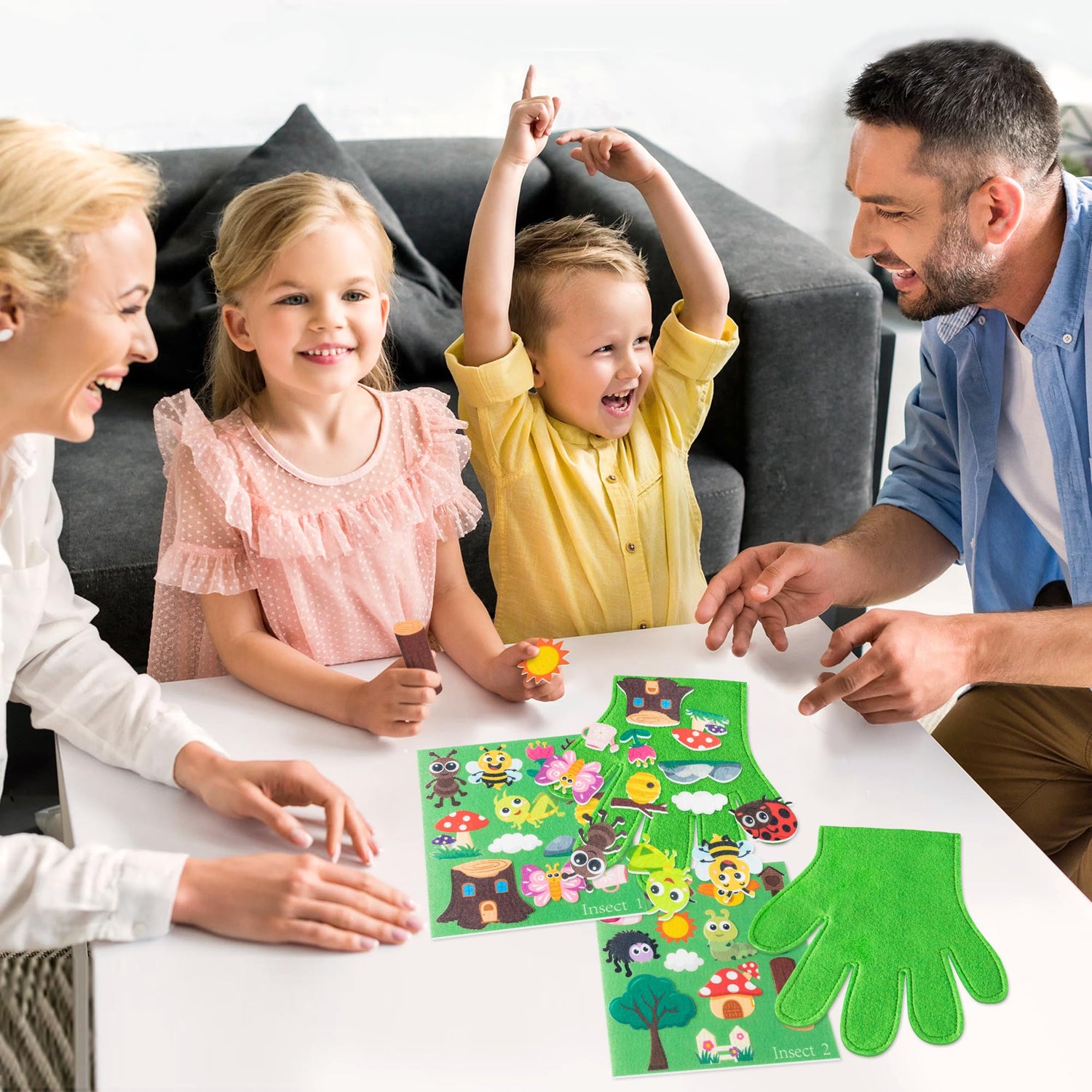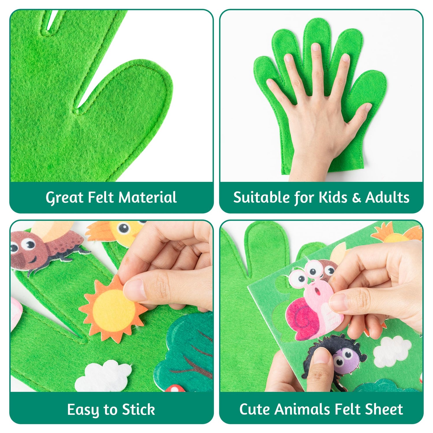 • Animal Felt Set: You will receive 2 felt gloves and 2 sheets of insect animals felt, suitable for kids to use their creativity to create interesting insect stories, the felt gloves can be decorated again and again to design different animal scenes.